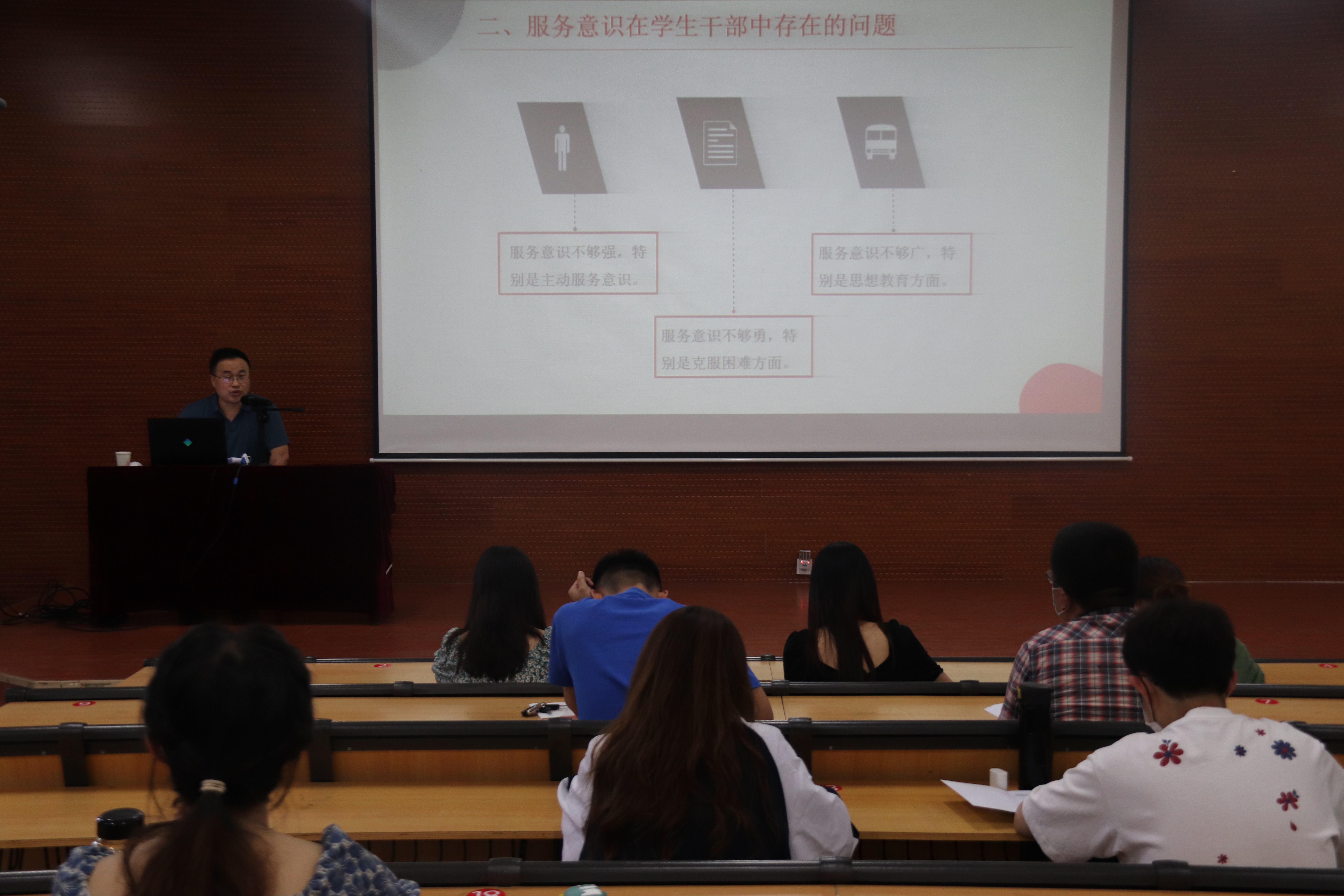 强化责任意识,永葆初心使命。为坚定同学们的理想信念,提高同学们的思想觉悟,强化学生干部的服务奉献意识,5月19日,校团委于政史楼A106报告厅举办青马工程骨干班培训会,赵勇老师担任主讲人。 培训过程中,赵勇老师从“转变学生干部角色,增强服务同学意识”这一命题出发,并结合实际案例,强调服务意识在学生干部中的重要性。赵勇老师讲解到,良好的服务意识既可以协调学生干部与普通同学之间的关系,也能提高学生干部工作的质量和效率,有利于学生干部的成人成才。赵勇老师一针见血地指出,现在的学生干部存在着服务意识不够强、服务意识不够勇、服务意识不够广等问题,强调学生干部应养成礼貌大方、诚恳谦逊的待人态度,具备务求实效、勇于创新的工作作风,培养宽容团结、大公无私的奉献精神。 培训结束后,同学们纷纷表示,学生会是全体同学的学生会,是学校联系广大同学的桥梁和纽带,作为学生干部更应该牢记服务同学的学业发展、文化生活、权益维护等问题才是工作的核心。我们应该杜绝“级别化”、“官僚化”,防止出现学生会工作人员作风不良的现象,从而真正成为服务同学成长的“同行者”。 权力的正确打开方式从来不是自由挥洒,而是对应着责任与谦卑。此次培训会的成功开展,深化了学生干部的服务意识,为培养优秀的青年政治骨干奠定了基础。作为学生干部,要少一点急功近利,多一点平心静气,少一点哗众取宠,多一点踏实稳重。真正做到在服务中成长,在实践中提高。