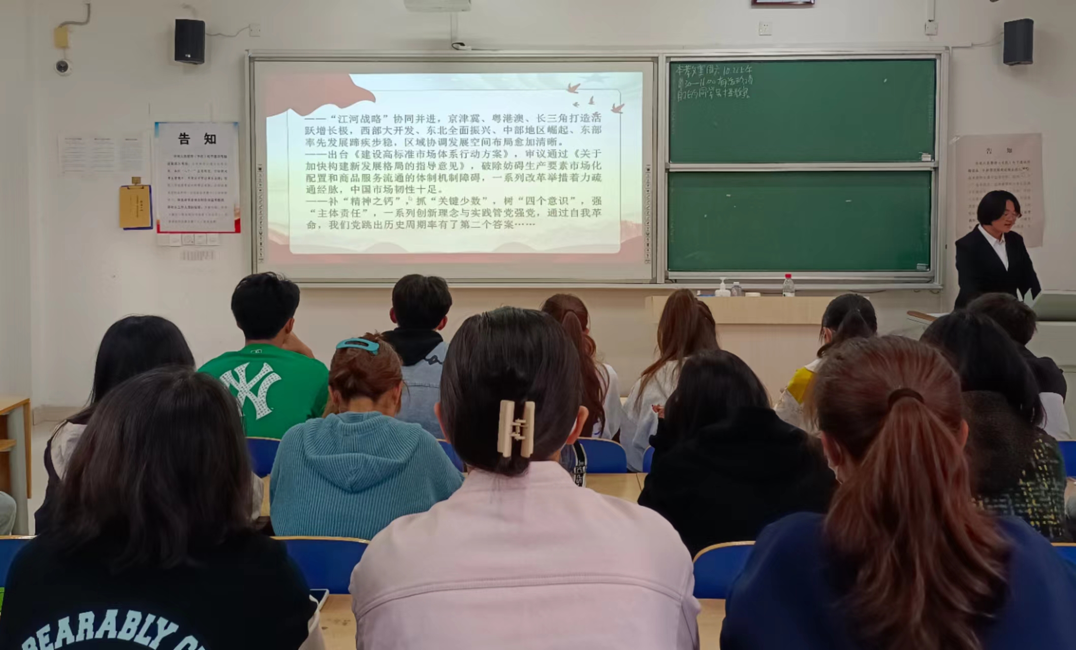 于6#A502教室举办“学习党的二十大精神,奋勇踏上新征程”第三期青马骨干培训会。2022级全体学生干部以及2021级部分学生干部参加本次会议。 会议上,负责人以党的二十大精神为引领,围绕党的二十大明确的思想内涵、战略部署、行动指南等方面,向同学们讲述我国当今国情和发展大趋势,使同学们了解我们所处的历史方位,明确我们今后的任务。负责人讲到,生逢其时,我们应当心怀大志,承担起时代的重任,既要仰头看璀璨星河,又要脚踏实地走好每一步,以远大的理想和踏实的实干来继续建设我们的祖国。接着,负责人介绍了党的二十大代表的优秀事迹,借此契机使同学们进一步学习劳动精神、奉献精神和实干精神,向党的二十大代表看齐,学习榜样精神,担当责任,敢作敢为。会议最后,同学们认真思考党的二十大对自身的启发,负责人通过击鼓传花的方式向同学们提问有关党的二十大的相关问题,以此考察同学们对本次会议内容的掌握程度。 本次青马工程培训会,加强了对青年学生的理想信念教育,有利于培养信仰坚定、素质优良、作风过硬的青年政治骨干,促使青年学生以实际行动践行“请党放心,强国有我”的青春誓言。 (图文:刘肖依 初审:吴恩熙 复审:吉绘霖 终审:巨国运)