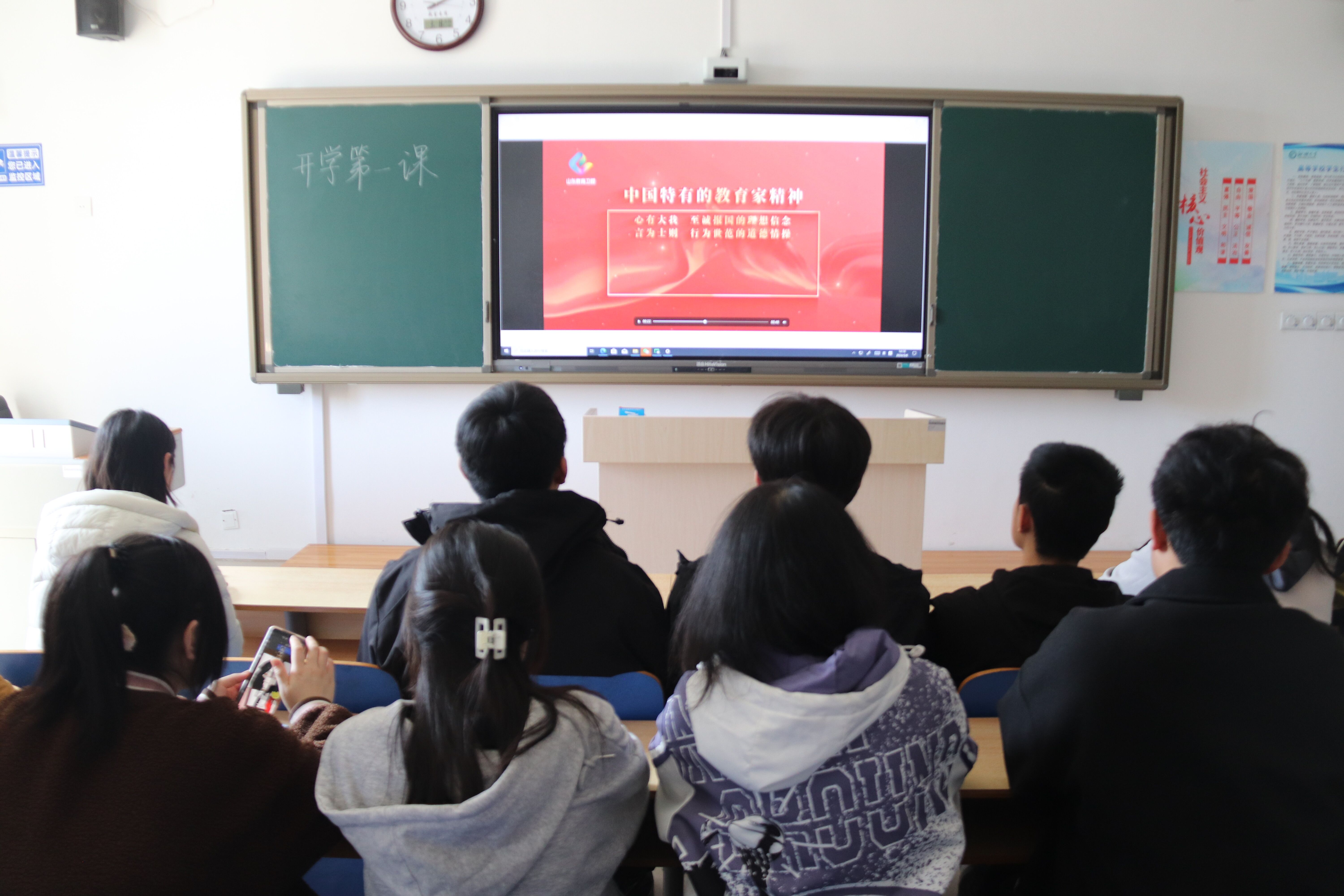 于6#A403教室开展“开学第一课,迈向新征程”主题教育活动。 新学期的校园,有相聚的欢声笑语,有“开学第一课”传递的正能量,有种下的新希望。满怀对新学期的期盼,2023级学生一同观看《开学第一课》。通过一个又一个真挚动人的故事,新时代奋进者们发挥榜样的力量,激励着同学们坚定理想、发愤图强,学好开学第一课,迎接精彩新学期。其中,令人印象最深的是山东省优秀教师代表、教育专家分享为人、为学、为师的教学经验。教师结合自身经验,以感人至深的故事向同学们展示人生奋斗的意义和价值。通过对教育家的思想内涵详细讲解,教师的谆谆教诲传递着积极向上的价值观和信仰,激励着广大师生崇德尚美、敬业立学。在观看《开学第一课》后,同学们纷纷表示要积极践行教育家精神,树立远大的目标,勇敢面对人生中的困难和挑战,坚定不移听党话、跟党走,保持和发扬奋斗精神,勇于探索、勇于创新,把“小我”融入“大我”,将个人成长融入到祖国发展中去,为中国梦的目标而不懈奋斗。 一元复始辞旧岁,阳春三月启新章。本次活动的顺利举办,有利于提升同学们的自我管理和自我教育能力,帮助同学们树立正确的人生观和价值观,以更加昂扬的精神面貌投入到学习和生活中,以更加饱满的热情和坚定的信念迈向未来。 (供稿:阿依布拉克·艾尼 摄影:邱皓臻 初审:张程程 复审:吴志钰 终审:尤姗姗)