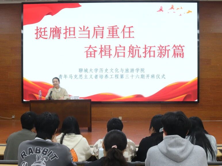 于6#A106报告厅举办第三十六期“青马工程”开班仪式暨专题学习会。学院团委书记石晓晗及第三十六期全体青马学员出席会议。 在庄严的国歌声中,全体人员肃立奏唱,激昂的旋律凝聚初心使命,为本次活动奠定庄重昂扬的基调。石晓晗围绕“青马工程”在青年成长成才中的意义展开系统阐述,深刻指出“青马工程”作为培养青年马克思主义者的核心平台,是引导青年坚定理想信念、厚植家国情怀的思想熔炉,对青年成长为担当民族复兴大任的时代新人具有不可替代的重要意义。石晓晗以优秀青年的典型事迹为案例,引导学员将个人理想与国家发展大局紧密结合,进一步明确自身成长方向,涵养行动自觉。 第三十五期优秀学员代表杜兴羽,回顾自己在青马班的理论学习与实践经历,分享学思践悟的体会,鼓励新学员坚定信仰、勇担使命,做到与时代同频共振、与人民同心同行。 第三十六期新学员代表侯欣灵在发言中表达对加入青马工程的荣幸,承诺将严守纪律,以青年马克思主义者的标准要求自己,做到知行合一、主动作为。 在观看学习影片后,本次开班仪式落下帷幕。学员一致表示,将以此次学习为起点,勤学善思,笃行实干,努力成长为有理想、敢担当、能吃苦、肯奋斗的新时代青年。 本次开班仪式的顺利举办,有利于推动学员在强国建设和民族复兴征程中主动作为、奋勇争先,书写无愧于时代的青春华章。下一步,学院将围绕“青马工程”培养目标,持续开展形式创新的专题教育活动,聚焦青年政治素养锤炼与综合能力提升,为党和国家培育高素质青年政治骨干。 (供稿:郭艺泽 摄影:郭艺泽 初审:郭艺泽 复审:宋佳珊 终审:石晓晗 尤姗姗)