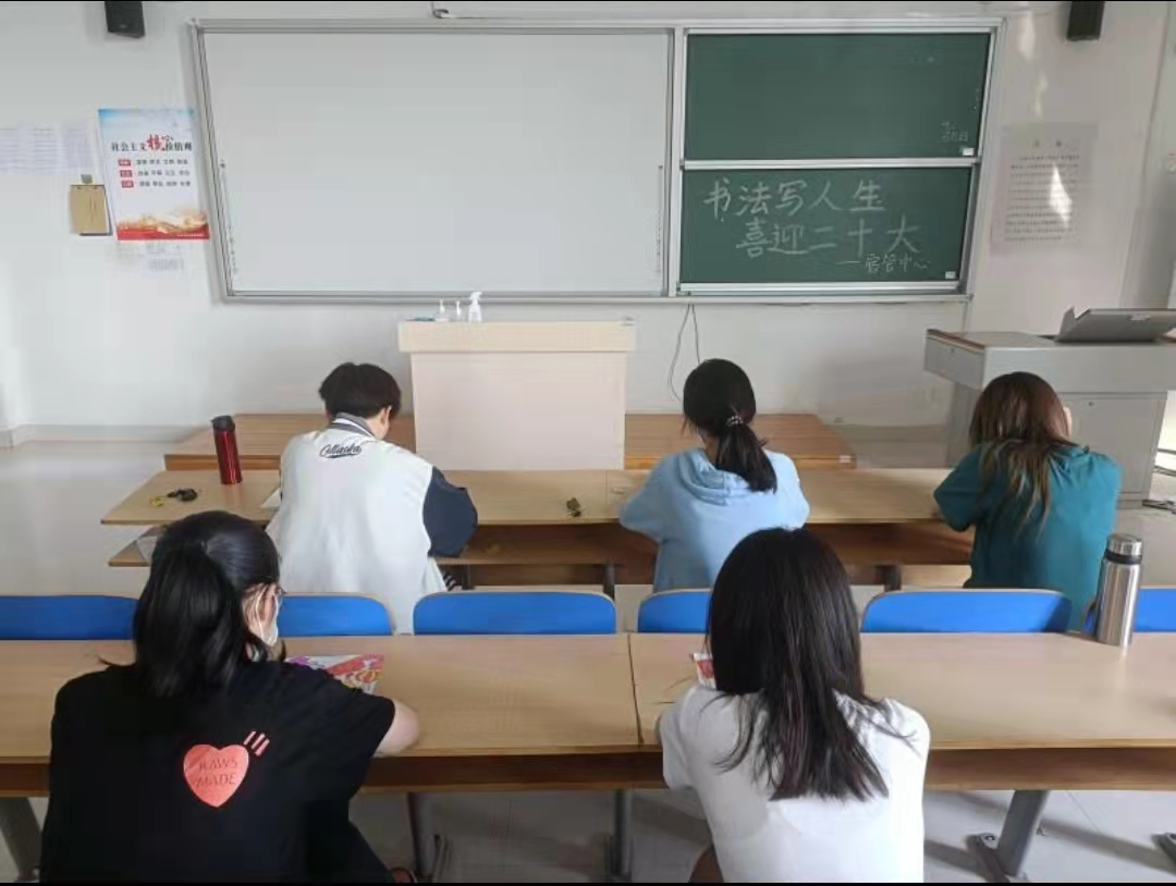喜迎二十大,奋进新征程。为号召同学们关注国家大事,了解国家动态和时代风貌,4月23日,我院于6#A502举办“书法写人生,喜迎二十大”书画大赛。 为加深同学们对党的二十大的认识,比赛开始前,主持人依托PPT,向同学们讲解党的二十大的拟召开时间、代表选举流程、召开意义等相关知识。比赛开始,同学们纷纷投入到以党的二十大为主题的书画创作当中。路文慧同学以“喜迎二十大”为主题作画两幅,画中包含红船、长城、人民英雄纪念碑、青年学子等元素,既蕴含红色文化,又展现出当代青年昂扬向上的精神风貌。“浩渺乾坤日月梭,人间盛世乐祥和。”刘嘉禾同学的书法作品以歌颂中国共产党的诗句为主要内容,她通过书法表达出对党的敬仰与祝福。徐静怡同学画牡丹图一幅,通过牡丹图预祝党的二十大胜利召开、祝福祖国繁荣昌盛。比赛结束后,评委们根据同学们上交的作品进行客观公正的评分,最终,路文慧同学获得一等奖;赵靖宇、董璇同学获得二等奖;叶新一、徐静怡、刘嘉禾、李丛珊同学获得三等奖。 本次活动的顺利举办,不但有利于同学们在展示书画技能的同时学习党的二十大相关知识,而且有益于激发同学们的爱国热情,强化同学们的使命和担当,引导同学们以奋发向上的精神状态迎接党的二十大胜利召开。(通讯员 王元君)