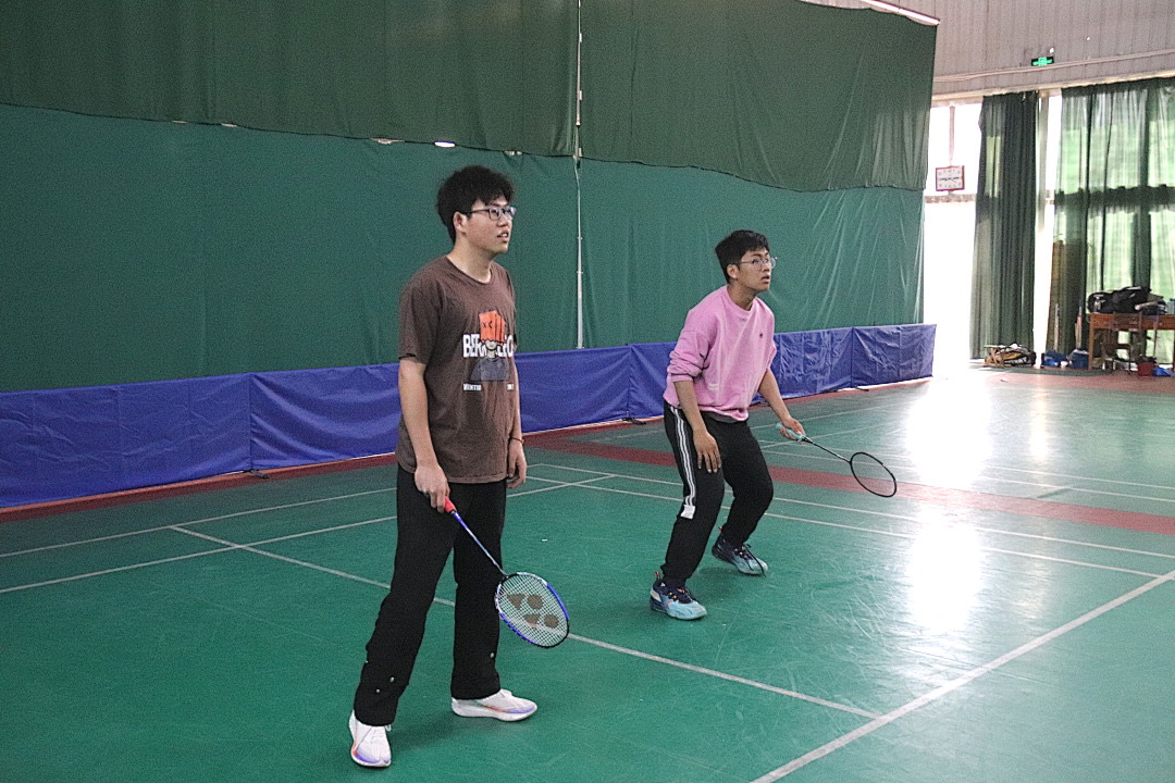 羽毛球队。比赛共分为男单、男双、女单、混双四部分,赛制为三局两胜制,每小局率先得到15分的的队伍赢得胜利。每局比赛结束后,双方交换场地。 伴随着响亮的哨响,比赛拉开序幕。各参赛队伍在球场上展开激烈的地对打。在单打比赛中,我方选手斗志昂扬,沉着冷静。面对对方的猛烈追击,我方选手反应敏捷,及时调整策略,进行反杀。只见我方选手时而奋力扣杀,时而轻盈击球,白色的羽毛球在空中画出一道优美的抛物线。比赛高潮迭起,喝彩声此起彼伏。经过短暂的中场休息,混双比赛正式开始。我方选手们配合默契,推球、挑球、扣球一气呵成。对方选手们严密防守,抓住时机反攻。双方球员你来我往,比赛一度进入白热化阶段。场上选手们的精彩表现赢得现场观众的阵阵掌声。虽然会有失误,但队员们相互鼓励,享受着比赛带来的乐趣。随着最后一球的落地,双方选手握手拥抱,本次友谊赛正式落下帷幕,观众仍意犹未尽。 羽梦飞扬映长空,友情挥洒共成长。本次友谊赛的顺利举办,不仅彰显出羽毛球运动的独特魅力,更激发出同学们对体育锻炼的热爱,有利于加强同学们之间的交流与沟通,进一步引导同学们积极参与体育运动,展现出青春的活力。 (供稿:魏志鹏 摄影:魏志鹏 初审:张程程 复审:吴志钰 终审:尤姗姗)