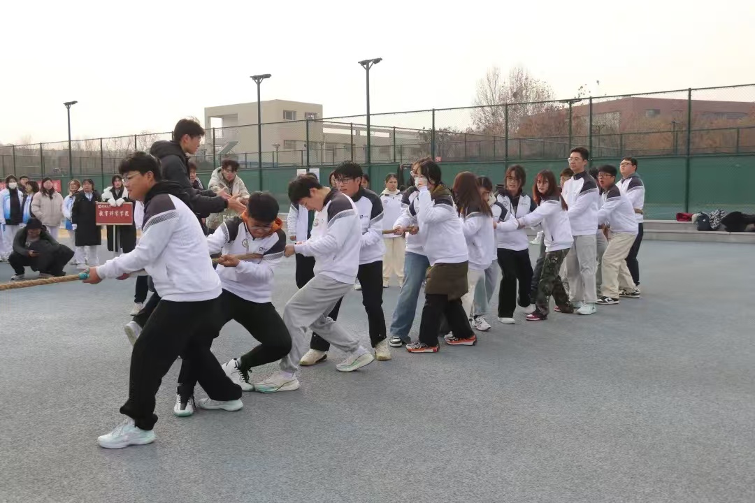 第十届“聚力杯”拔河比赛。 本次拔河比赛采用男女混合赛制,分为淘汰赛、半决赛和决赛三个阶段。赛前队员们状态热情,活力满满,有条不紊地商定比赛策略,蓄势待发。 随着裁判一声哨响,拔河比赛正式开始。双方队员们迅速进入状态,屏息静气,身体后倾,双臂紧握长绳,双脚用力蹬地,神情专注而坚定。队员们用力量和毅力挑战极限,每一次拉锯都凝聚着团队的智慧与力量。赛场旁,同学们的加油声此起彼伏,热情如潮,他们奋声呐喊,为这寒冷的冬日增添了一抹浓浓的暖意和无尽的活力。这不仅是一场体力的较量,更是团队精神与集体荣誉的展现。随着赛程推进,比赛进入白热化阶段。队员们面色涨红,汗水如雨,却依然咬牙坚持。双方队员们皆拼尽全力,以不屈之姿诠释着竞技精神。此刻,胜负皆成过往,同学们在这场扣人心弦的拔河比赛里,共同见证了热血在青春画布上勾勒出的壮美剪影,每一个奋力拉扯的瞬间,每一声震耳欲聋的呐喊,都成为了青春长卷中浓墨重彩的笔触。最终,经过激烈比拼,小妲己直播