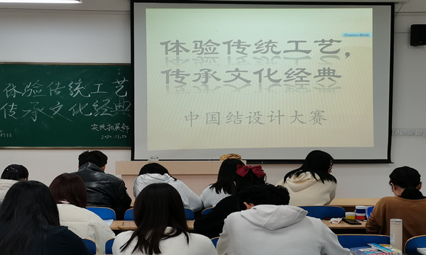 于东校区6#A304教室举办“体验传统工艺,传承文化经典”中国结设计大赛活动,韩骏毅、郑林担任本次活动的主持人,20级同学参加本次活动。 在主持人声情并茂的开场白后,本次活动正式拉开序幕。本次比赛分为两个环节。第一环节由参赛选手绘制出自己心中的独特中国结,第二环节,各个选手上台讲解自己的中国结设计理念。在第一环节中,各个选手将灵感与想象力融汇,运用多变线条与丰富色彩,绘制出自己心中的独特中国结。马寒冰同学另辟蹊径、想法奇特,以鲜红色花朵为主体、吉祥金黄色为点缀,设计出夺人眼球的炫彩中国结。而孙崇雪同学则将自己的设计融入时代特色,将疫情中英雄的形象和生肖鼠绘入设计之中,并以象征希望的蓝色为底色为未来许美好愿望。最后,经过参赛选手们的现场投票,马寒冰同学以优势胜出,获得本次比赛的一等奖,孙崇雪同学获得二等奖,刘芸西、宋晓伟同学获得三等奖。 本次活动的成功举办,不仅有利于丰富同学们的大学生活,锻炼同学们的创新能力,还有利于传承中华优秀传统技艺,体会中华文化之美,激起同学们的爱国之情,增强文化自信心。(通讯员 韩晓)