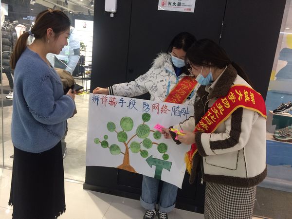 于聊城市万达广场举办“辨诈骗手段,防网络陷阱”活动。 来到活动场地,志愿者们为市民分发知识卡片,并结合具体的案例为其讲解虚假获奖信息等常见的诈骗手段,让市民充分认识到网络诈骗的多样性与危害性。在人们对网络诈骗有了初步的认识后,志愿者们邀请市民参与防诈骗知识答题活动,耐心纠正市民对网络诈骗的错误认知。为使市民对此有更加深入的了解,志愿者们让市民辨识展板上所列举的事件分别对应何种诈骗方法,并将写有诈骗手段的小卡片贴到树状图的相应位置。活动中,志愿者们与市民积极展开互动,并对现场参与者进行简单采访,询问其身边是否发生过类似网络诈骗的案例。市民积极配合,为志愿者们讲述自己遇到的网络诈骗事件,并乐于分享自己对网络诈骗防范的感悟和看法。志愿者们也在市民的讲述中切身体会到防诈骗的重要性,并提醒市民要注意防范网络陷阱。活动最后,志愿者们对市民的热情配合表示感谢,并进行合影留念。 此次活动的成功举办,不仅让市民了解到更多网络诈骗的相关知识,而且有助于提高市民对网络诈骗的警惕性和防范意识。(通讯员 冷林春 赵春雨)