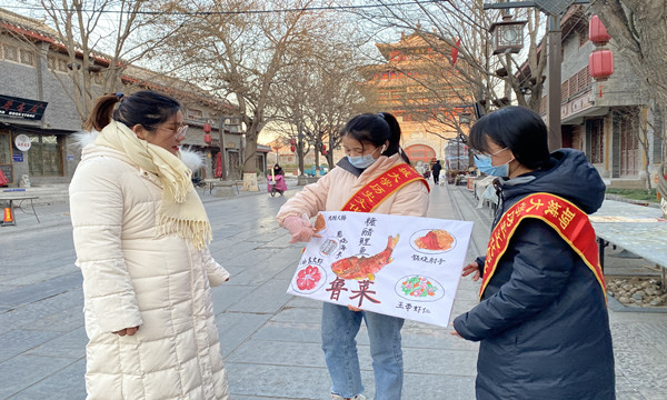 千年美味今犹在,薪火中华入鼎汤。为了传承鲁菜文化,弘扬传统美食文化精神,锻炼大学生志愿者的交流沟通能力,1月11日,我院于聊城市古楼广场举办“公益讲鲁菜,舌尖传文化”活动。 为了达到更好的宣讲效果,大学生志愿者们通过经典的鲁菜画作,将传统鲁菜展现在人们的面前,糖醋鲤鱼、葱烧海参、九转大肠等几道经典鲁菜栩栩如生,跃然纸上。随后,大学生志愿者来到聊城市古楼广场,向路人们讲解有关经典鲁菜的做法、分类以及背后的文化。大学生志愿者运用生动的语言,伴以精美的画作展板,吸引路人的停留围观。大学生志愿者讲到:鲁菜文化植根于中华古老的思想和观念,其核心意识与传统的儒、释、道家主张的饮食文化一脉相承。在志愿者绘声绘色的讲解中,路人们对传统鲁菜有了一定程度的认识。为进一步激发路人对鲁菜的兴趣,大学生志愿者借助鲁菜画作,让路人们竞猜鲁菜名称与制作方法,现场气氛迅速活跃,有力地提高路人们的参与度和积极性,使人们深刻了解到鲁菜文化的源远流长和中华饮食文化的博大精深。 本次活动的顺利举办,不仅有利于让大众了解更多鲁菜美食的制作知识,展现中华美食的魅力;而且有利于提高对我国传统饮食文化的认识,在社会上营造一种弘扬传统文化的良好氛围。(通讯员 于昕禾)