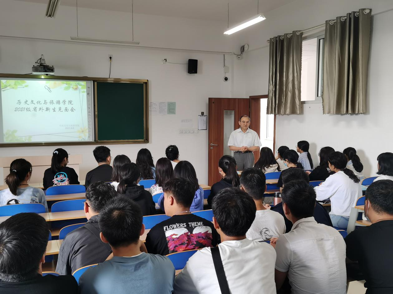 院长李增洪、党总支副书记卢庆洪、团委书记李姮、教师代表谭岳霖及2021级省外新生参与本次见面会。 会上,李增洪对省外新生加入学院大家庭表示欢迎,并对新生的大学生活作出指导与规划。他认为,大学生活是人生的一个转折,应当珍惜时间,努力提升自己。卢庆洪从地域问题和民族团结两方面入手,强调省外同学应该积极融入集体,在学习生活上互帮互助;汉族同学与少数民族同学也要互相尊重风俗习惯,做到“各民族一家亲”。随后,李姮对当前疫情问题做出分析,指出省外新生在学校也应注意防护,确保自身的安全健康。同时,新生要提高警惕,谨防网络新型诈骗。谭岳霖对省外新生的生活和住宿情况加以询问,帮助新生更好的适应大学生活。会议最后,老师们对省外新生提出殷切期望,希望他们度过一段充实而有意义的大学时光。 本次见面会的举办,增强了省外新生的归属感,不仅有利于省外新生了解学校基本情况,而且搭建了同学之间交流的平台,为新生的大学生活指明方向。(通讯员 田坤)