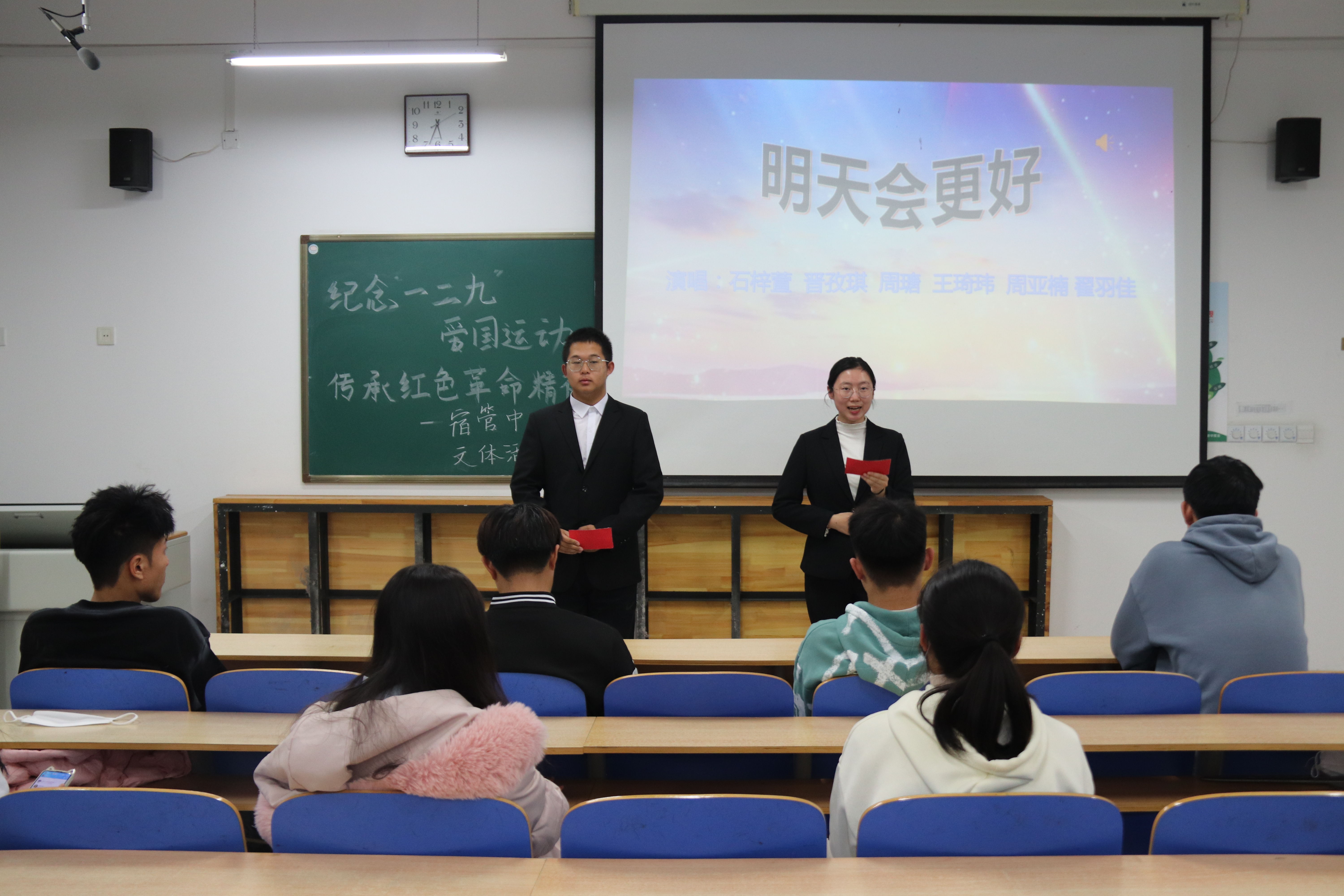 高举爱国火炬,传承青春活力。为纪念一二九抗日救国运动爆发八十六周年,感悟先辈们不畏牺牲,英勇报国的革命英雄主义精神,12月9日,我院于6#A404举办“纪念一二九爱国运动,传承红色革命精神”活动。