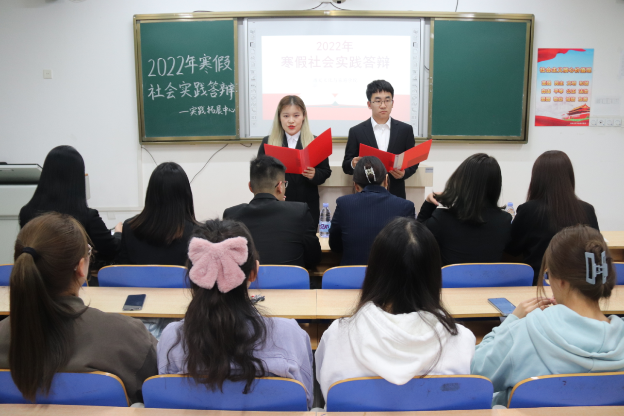 于6#A303举办2022年寒假社会实践答辩会。 伴随着主持人的精彩开场,本次答辩活动正式拉开帷幕。本次寒假社会实践答辩会分为班级答辩和学生组织答辩两部分。答辩小组按抽签顺序依次上台,评委结合各小组的实际表现情况分别进行打分和评价。 3月18日进行班级答辩环节,“庆新春佳节,赏年俗风味”志愿服务队通过PPT讲解的形式展示活动背景、调研报告以及活动总结,并讲到他们借助社会实践活动将木版年画、八角鼓、东昌葫芦等聊城独特风俗文化推广到千家万户。同时,来自各个班级的社会实践队积极参与到运河保护、疫情防控、科技筑梦等社会公益服务中。 在3月19日的学生组织答辩环节中,各志愿服务队就食品安全、教育政策、红色精神等社会热点问题的调研实践展开答辩。其中“关爱流浪动物,共建和谐家园”志愿服务队就流浪动物问题提出独到的见解,并鼓励同学们积极参与到流浪动物保护事业中去,共建生态宜居;聊城段京杭大运河保护调研服务队采取线上线下相结合的调查方式,充分展现了服务队深入基层的点点滴滴,并指出要努力实现习近平总书记强调的“河为线,城为珠,线穿珠,珠带面”要求,将民族精神绵延下去。 答辩过程中,各队伍通过视频、图片、动画的形式,讲述在社会实践过程中详细具体的工作安排,并以流畅的演讲呈现出整个团队对社会实践课题的深入探究和独到看法。同时,评委们也记录讲解同学PPT中的不足与讲解时的细节问题,予以合理建议,帮助他们丰富答辩经验。 行是知之始,知是行之成。此次答辩大会的顺利举办,不仅有利于促进各社会实践服务队进行经验交流分享,提高同学们志愿服务活动的自信心和竞争力;而且有利于帮助各队总结经验,发现不足,吸取教训,加强志愿服务活动的宣传和推广,展现小妲己直播