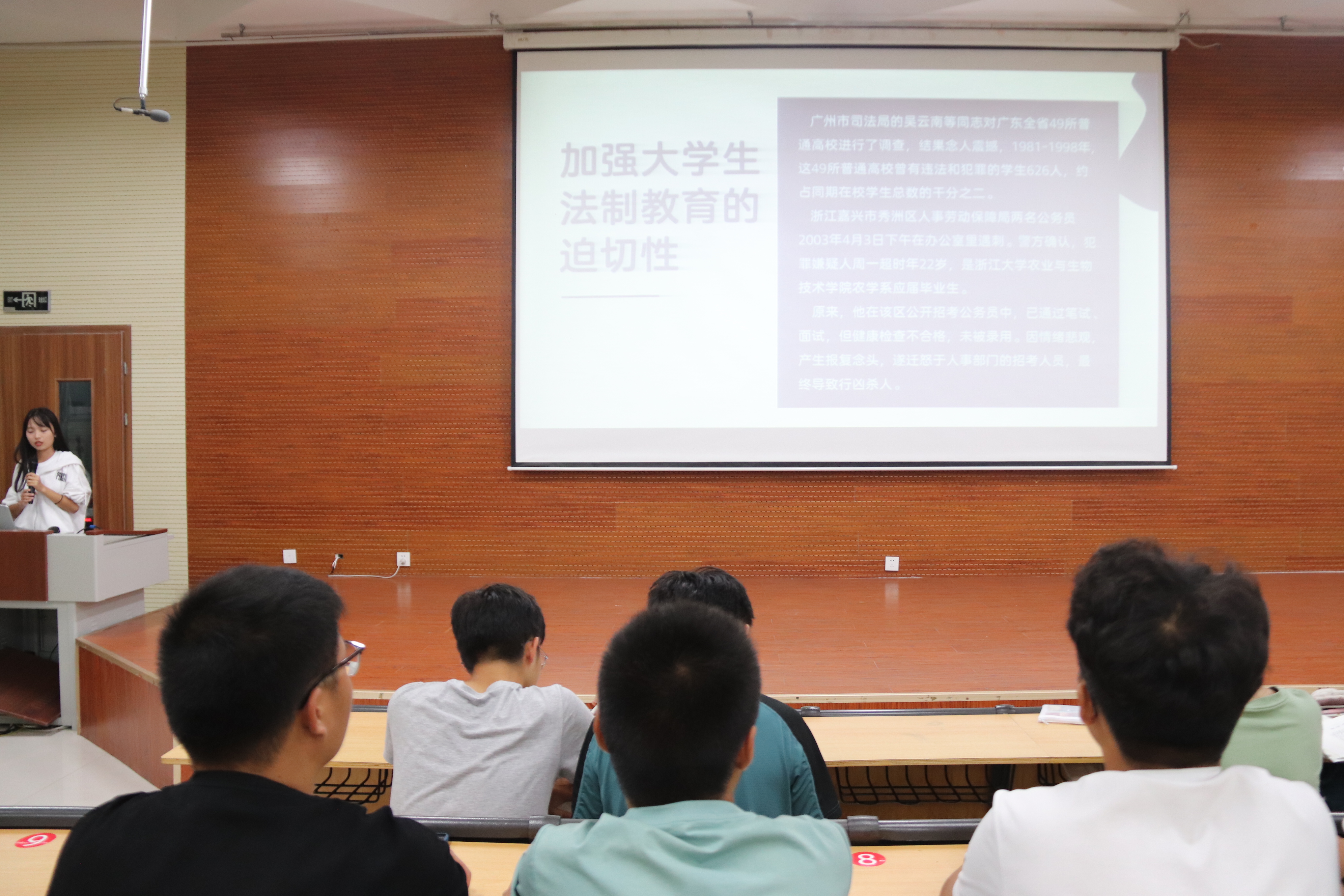 于6#A106报告厅举办法制与安全新生教育活动。 活动伊始,负责人围绕人身安全、交通安全、财务安全、网络安全和防疫安全五个板块,向新生介绍校园安全事故的常见类型及防范措施。同时,针对网络电信诈骗层出不穷,形式多样,受骗群体覆盖广的特点,负责人以典型案例深入浅出地分析淘宝购物刷单、互联网兼职、网上购买游戏装备等新型诈骗,并通过列举QQ、微信等社交平台扫描二维码、快捷支付等交易方式,提醒新生识别电信诈骗,学会保护个人资料信息,增强自身防骗能力,提前打好防止上当受骗的“疫苗”。为使新生深刻认识到法制安全教育的紧迫性,负责人以校园存在的法治隐患为出发点,对新生目前应有的法律责任以及如何提高自身的法律意识、安全素质等问题进行讲解,借助相关短视频,阐述当代学生因缺乏法制观念而造成的严重后果,鼓励新生积极与危害自身安全的行为作斗争。 本次活动的举办,不仅有利于新生了解和掌握基本的法律常识,增强法制理念,进一步提高“知法”、“懂法”、“守法”、“用法”的能力,还有利于促使新生学以致用,积极预防校园安全各类案件和安全事故的发生,营造良好的安全育人环境,共建和谐校园。 (通讯员 吴恩熙)