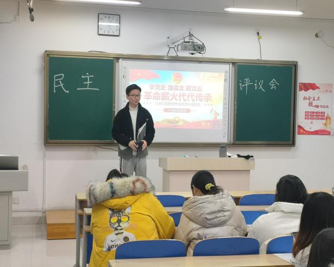 团委。本团支部由42名满怀理想的青年组成,同学们在相处中逐渐从陌生走向熟悉,从沉默走向热情,从分散走向团结,在学校和学院团委的关怀指导下,坚持贯彻共青团章程和改革方案,努力推进“班团一体化”,严格落实“三会两制一课制度”,形成了一个戮力同心、精诚团结的优秀团支部。 2020年我团支部积极开展活动,分别聆听中国社会科学院徐建新教授、上海社科院胡志勇教授等知名学者的学术报告,开阔同学们的历史视野。本团支部依托到梦空间、腾讯会议等线上平台,积极开展如“调查低碳经济,感悟国家发展”、“共食人间烟火,共创美好环境”等活动,增强成员们的社会实践能力,为创建文明和谐社会奠定基础。 (图1 2019级3班团支部合照) 团支部工作大体开展情况: 一、牢固基层团组织建设,营造团支部浓厚创优氛围 2019级3班团支部坚持打牢基础,进行支部成员思想建设,打造优质团支部,形成浓厚创优氛围。团支部现有预备党员1名,入党积极分子4名,共青团员33名,是一支朝气蓬勃、有凝聚力和战斗力的队伍。团支部定期召开支部大会和支部委员会,发扬民主作风,使每一名团员积极投身组织建设。在每学期初拟订工作计划,开展支部团员大会、组织生活会、完善智慧团建信息、团费收缴等。努力推进班团一体化,将班会与团课相结合,共同进行“青年大学习”团课学习。 (图2 团支部共同学习十九届五中全会精神) 二、拓展学习视野,塑造浓厚学风支部形象 本团支部始终把建设和培育“学习型”组织作为主要内容,以促进乐学好学的学风为目标。团支部结合专业特色组织聆听专家讲座,如“作为史学分析概念的资本主义”、“关于纳粹德国历史反思差异及其意义”等。疫情期间依托腾讯会议平台聆听胡志勇教授、赵文洪教授等知名学者的学术报告。2020年综合测评年级前十名中,共有3名本支部成员。2021年,共有3名同学参与大学生创新创业训练计划,另有2名同学参与“挑战杯”竞赛,已进入省赛。本团支部还举办读书分享会,每周进行好书分享,打造浓厚学风团支部。 (图3 2019级3班团支部聆听俞金尧教授的学术讲座) 三、依托活动载体,营造团员能力提升广阔平台 本团支部坚持团员多方面、全方位发展,鼓励同学们参加丰富多彩的团日活动与社会实践活动。本支部结合专业特色,举办“探寻历史长河,领略古今风韵”、“缅怀革命先烈,弘扬爱国精神”等活动。社会实践紧密联系社会热点,举办如“摊寻民生味道,星光助力经济”“同心共战疫,防控常态化”等活动,班级志愿服务注册率达100%,多人获社会实践先进个人称号,疫情期间,班内多名成员参加抗击疫情志愿服务活动。 (图4、5 团员进行社会实践活动及参加礼仪大赛) 四、夯实特色阵营,打响团支部建设品牌 团干部带领团员认真开展团日活动,坚持贯彻党建带动团建理念,向学院党支部、优秀团支部学习经验。对接17级4班团支部,分配党员带领团支部进行思想学习,使团员始终保持积极向上的精神风貌。团支部专门设立权益委员、朋辈心理辅导员,畅通诉求服务渠道,积极反应同学们的心声。团干部发挥模范作用,以宿舍为单位实施“团干部专项负责制度”,定时与团委老师共同进行宿舍走访。 (图6、7 党员带领团支部进行组织生活会和团委老师、团干部共同走访宿舍) 五、提升思想觉悟,积极靠拢中央组织 思想建设是团支部建设的重要部分,本支部积极推进团支部思想建设,引导团员学习中国特色社会主义理论体系。通过开展富有意义的红色电影欣赏、参观烈士纪念馆等团日活动,提升支部成员的思想素质。在团支部优良风气的熏陶下,两年来,同学们积极向党组织靠拢,现有入党积极分子4名,中共预备党员1名,28位同学积极递交入党申请书,正在接受党组织的考验。9名同学积极递交入团申请书,渴望加入共青团组织。 (图8、9 团支部进行红色电影欣赏、参观烈士纪念堂) 主要成绩: 1.2019年团支部成员隋元昊等7人获军训先进个人; 2.2019年团支部成员蔡欣妤获小妲己直播
