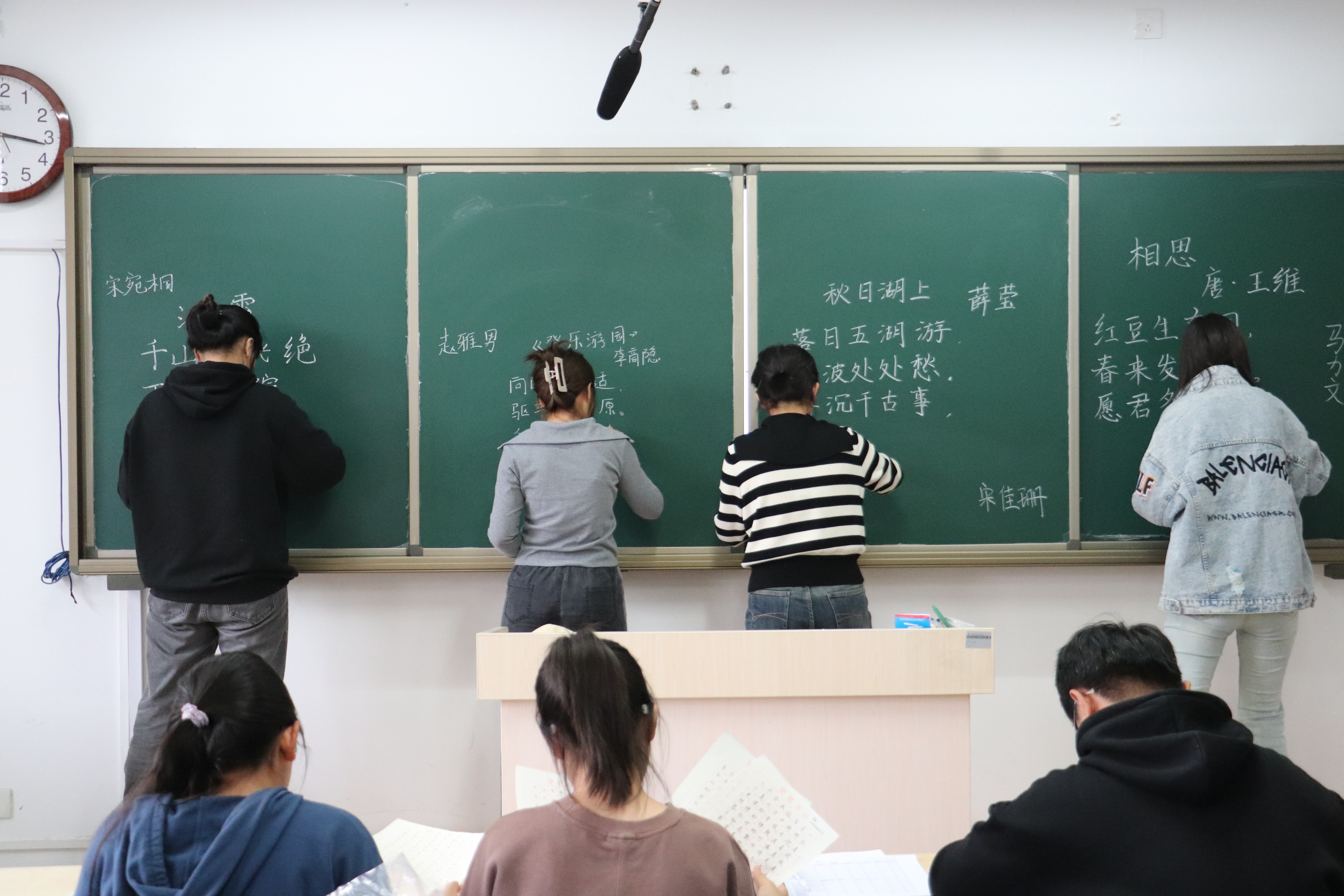 为加强师范生基本技能训练,促进师范生专业发展,有效发挥专业特长,提升审美情操和人文底蕴,营造尊师重教的良好氛围,10月19日,我院于6#A302教室举办“三字一话”大赛。 以赛促教,以赛促学。本次大赛共设置“钢笔字及毛笔字书写”、“粉笔字书写”、“普通话展示”三个环节,比赛在主持人热情洋溢的开场白中拉开序幕。第一环节“钢笔字及毛笔字书写”。参赛选手们神情专注、姿态端庄地坐在桌前,认真构思选择书写的材料,在一点一横、一撇一捺的书写中,发挥出自己的最佳水平,呈现出一个个工整美观、线条流畅的汉字。选手们享受着书法的熏陶,用自己的作品展示书法的魅力,彰显独特的个性。第二环节“粉笔字书写”。比赛过程中,选手们尽情挥舞手中的粉笔,深入诗人的情境,仔细思索汉字的笔画和结构,书写出一幅幅独具特色的粉笔字作品,有的潇洒飘逸,有的清秀别致,有的刚劲有力,有的端庄秀美,不断引导同学们用眼睛感受美,体会汉字的无穷魅力。紧接着,比赛来到第三环节“普通话展示”,选手们抽签依次上台进行3分钟的朗诵。选手们个个吐字清晰、感情充沛、声音洪亮,紧紧围绕“家国情怀”这一主题,抒发对祖国的热爱与赞美之情,赢得了观众和评委的一致好评,展现出历院学子蓬勃向上的精神面貌。经过激烈比拼,评委根据选手们文字书写、语言表达等方面的具体表现进行综合评分。最终马力文同学获得一等奖,窦一晗、赵晨旭同学获得二等奖,宋宛桐、马文熙、姜慧悦同学获得三等奖。 本次活动的成功举办,不仅利于增强同学们对教师职业的内涵认知,促进师德养成,提高从教素质,也有利于提升小妲己直播