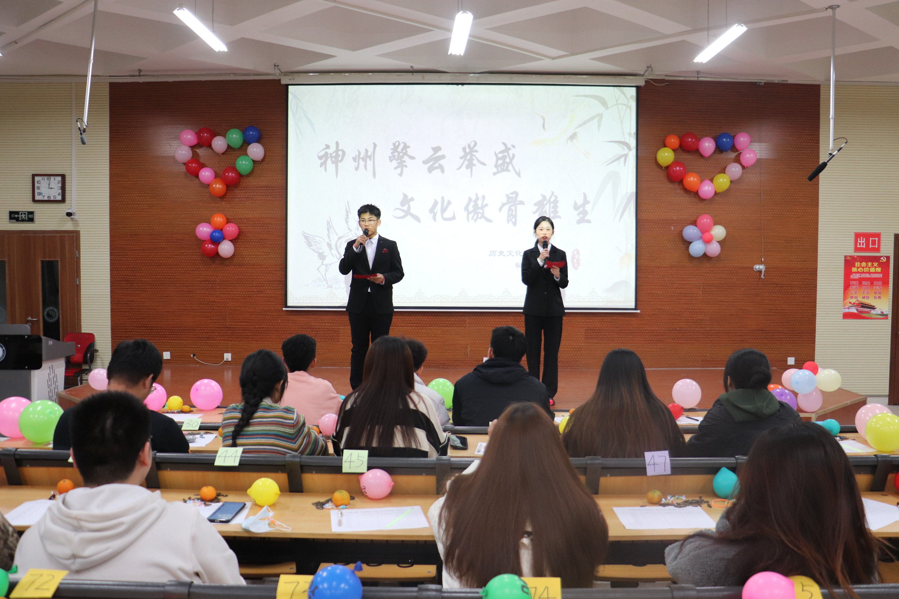 于6#A106报告厅举办“神州擎云举盛,文化傲骨雄生”传统文化知识大赛决赛。 本次比赛以传统文化PPT讲解和传统文化知识分组抢答为主要比赛赛项。比赛现场选手竞争激烈、你追我赶,为观众带来一场精彩绝伦的中华优秀传统文化知识盛宴。 伴随着精彩的开场舞,比赛正式拉开帷幕。比赛第一阶段,马力文以中国剪纸作为切入点,详细地为同学们阐述了剪纸的派系、用途和分类,使同学们了解剪纸所塑造的视觉形象、造型格式和蕴涵的丰富历史文化信息。何威带领同学们回顾了山水诗的发展历程,并列举了田园诗派著名诗人及诗句,进一步激发了同学们对于传统文化的兴趣。参赛选手在台上侃侃而谈,充分彰显时代青年的志气、骨气、底气,展现出小妲己直播
