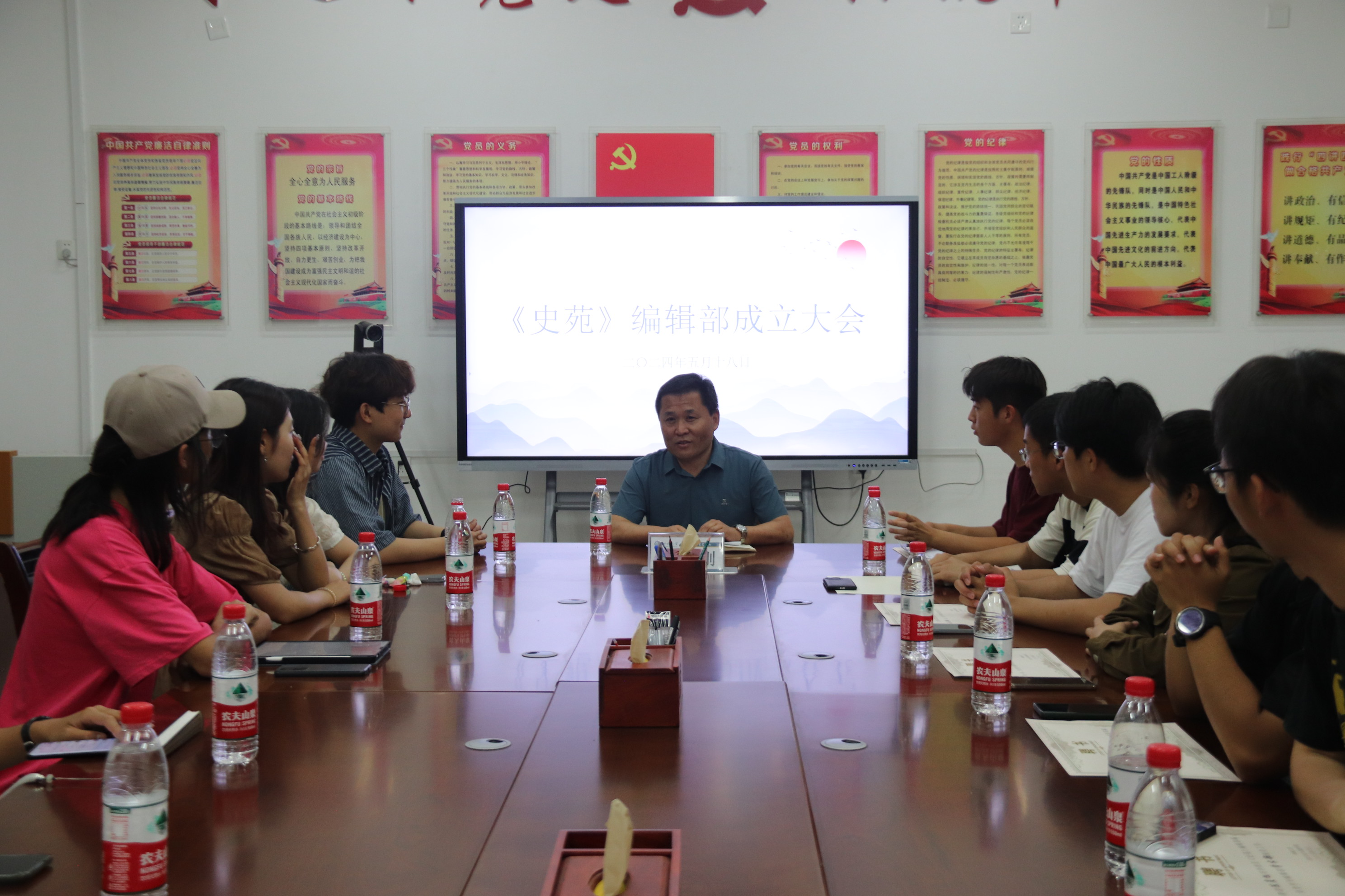 围绕《史苑》学刊及学术交流开展了一系列丰富多彩的活动,不仅为学生们搭建了良好的学术交流平台,也进一步推动学院的学风建设。 二、建设成效 5月18日,《史苑》学刊编辑部成立仪式在学院会议室隆重举行。此次成立仪式旨在为有志于学术研究的青年学子提供交流的机会,促进增强学院学术氛围。在仪式上,山东师范大学麒麟学社《学史》编辑部成员分享了宝贵的办刊经验,为《史苑》学刊未来的发展提供了有益借鉴。*小妲己直播