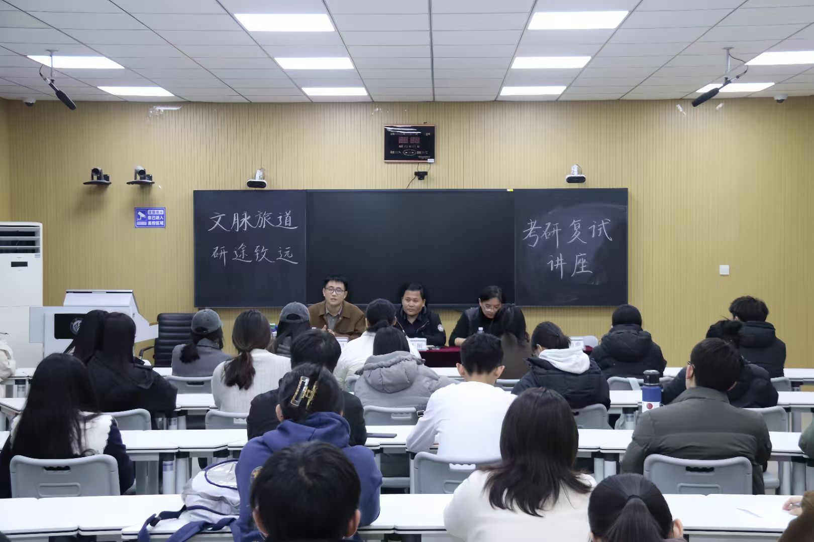 于6#A301智慧教室举办历史学、外国语言与外国历史专业考研复试指导活动。学院副院长官士刚、历史系系主任吕俊昌、外国语言外国历史系主任郭伯虎、科研秘书倪鹏出席活动。 官士刚剖析近几年的考研形势,以具体案例强调认真准备考研复试的紧迫性与重要性,让学生对当前考研形势产生清晰认知,提醒同学们戒骄戒躁,沉心备考。他建议学生系统复习专业课程,了解学校的招生政策、复试规则和专业的研究方向,做到信息交流共享,共同进步。 吕俊昌结合多年以来参加学院研究生复试的经验,对复试前的准备工作进行细致讲解,叮嘱学生认真梳理、复习和巩固专业核心知识点。他结合历年真题分析专业知识考察重点,着重讲解复试的准备方法,指导同学们构建知识框架,有针对性地进行复习。郭伯虎聚焦面试环节为学生分享面试礼仪与沟通技巧,强调仪容仪表的重要性,并建议学生在答题时认真思考、梳理逻辑,从而以自信饱满的心态迎接复试。 倪鹏针对前期目标提出要求,他提醒同学们在复试之前做好信息搜集,并详细介绍考研复试与调剂的流程及应试方法,提醒同学们端正态度,提前熟悉环境,舒缓复试压力。对于历史专业复试中如何应对跨学科知识的考察的问题,倪鹏指出,应发挥原有专业的优势,找到其与目标专业的融通点,展示个人跨学科的思维和能力。最后,各位老师为学生答疑解惑,鼓励考生们要坚定信心,保持积极心态,在复试过程中展现优势、发挥特长。 此次考研复试指导活动的顺利举办,不仅为同学们提供了实用的备考方法,增强他们的应试信心,还有利于其明确备考方向,为学生成长成才奠定坚实基础,为学院人才培养提供助力。 (供稿:王梦 摄影:王梦 初审:刘舒雅 复审:张程程 终审:尤姗姗)