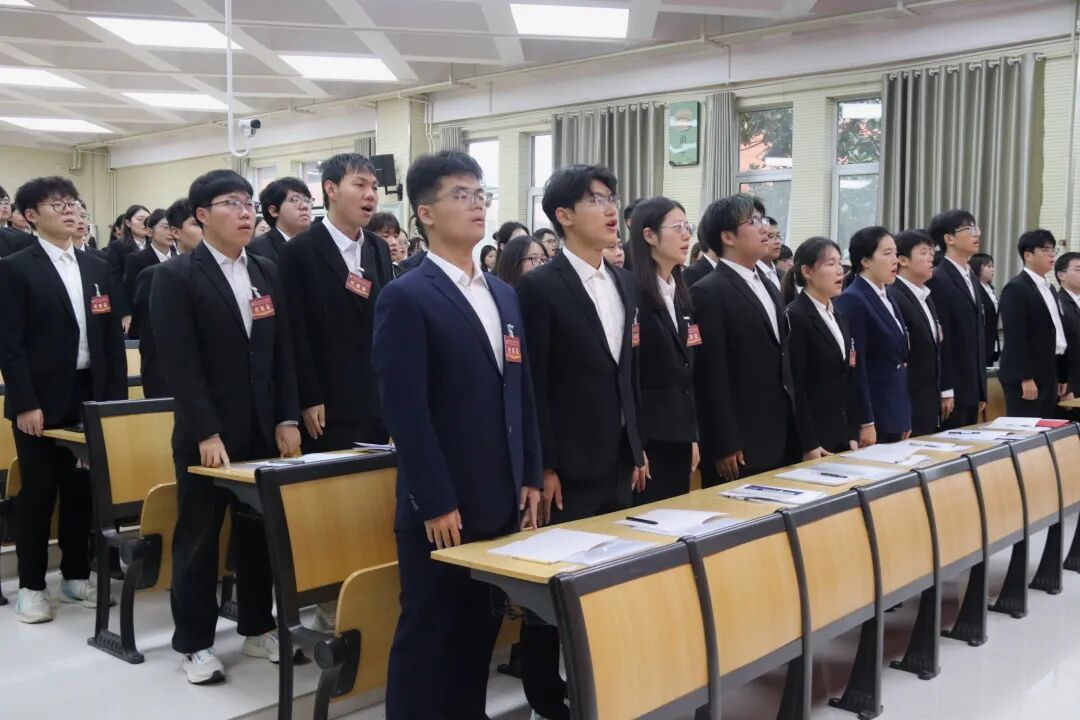 第九次学生代表大会暨第七次研究生代表大会于6#106报告厅顺利召开。学院党委副书记、副院长卢庆洪,团委书记石晓晗,全体辅导员出席大会开幕式,学院2025届学生会主席团成员、研究生会主席团成员等122名学生代表参加会议。 大会伴随庄严的国歌正式拉开帷幕。工作人员宣读《关于同意*小妲己直播