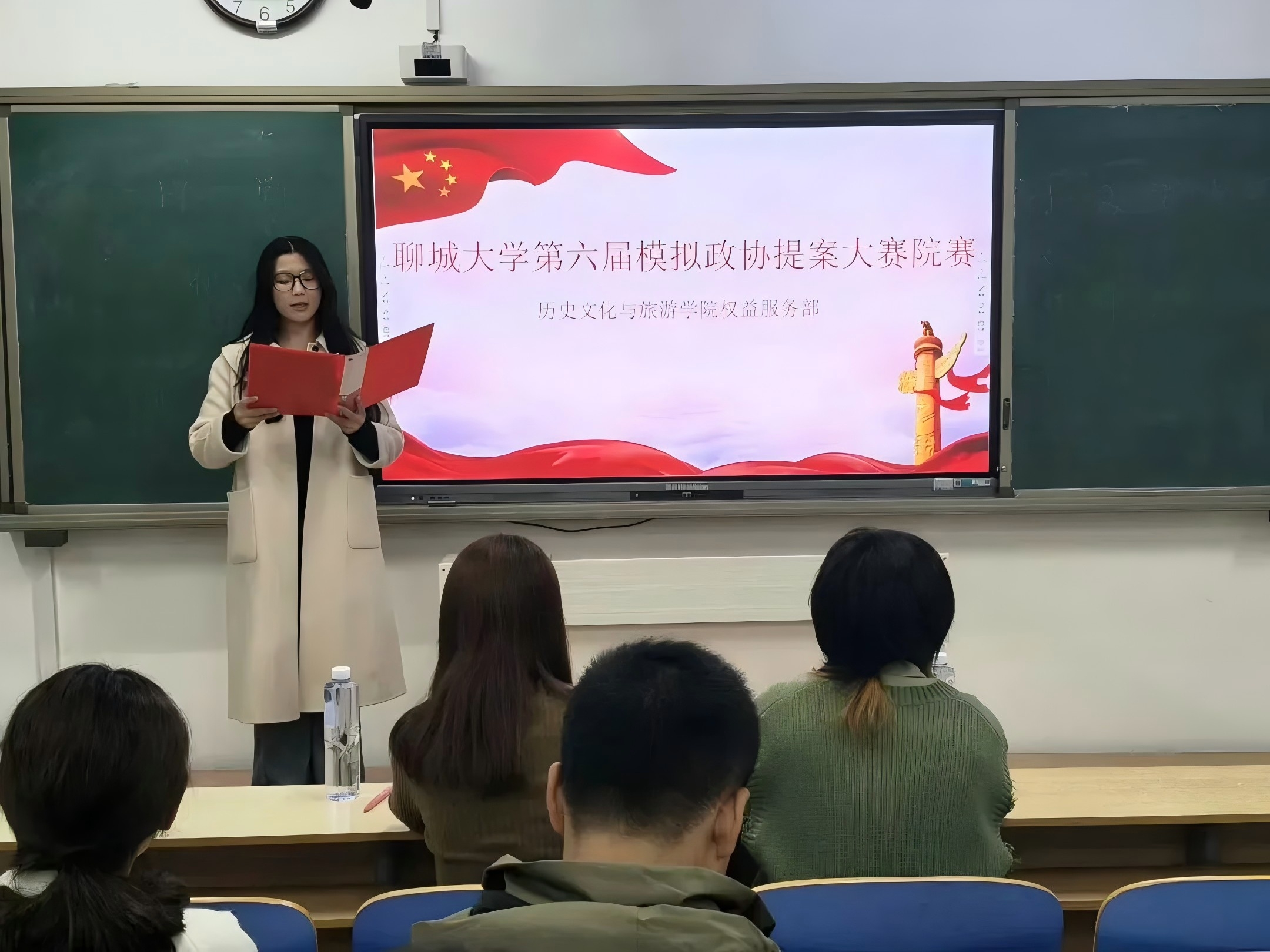 第六届模拟政协提案大赛院赛。 比赛在主持人的介绍中拉开帷幕。参赛选手经过深入调研与严谨思考,围绕背景、原因及建议进行充分准备。他们在现场分享精心撰写的提案,生动展现出青年一代对校园建设与社会发展的责任感和洞察力。针对“数字鸿沟”问题,崔婧文呼吁保留传统服务、加强全民数字素养培训与普惠技术研发,推动包容性数字社会建设。在文化领域,杨颖建议深入挖掘聊城历史文化资源,打造“大聊城”IP,促进文旅融合与产业转型。针对大学生心理困境,多份提案提出完善心理支持体系、优化课程设置与服务机制。现场气氛热烈,思维碰撞不断。参赛选手以沉着自信的陈述和条理清晰的表达,充分展现当代大学生心系家国、锐意创新的精神风貌。评委认真听取汇报,对各提案的合理性、逻辑性与创新性给予充分肯定,并从多个维度进行综合评分。最终,魏赫、崔婧文、陈薪茜三位选手荣获前三名。 本次活动的顺利举办,不仅有助于提升青年发现问题、分析问题与解决问题的能力,有效推动学科教育与思政教育的有机结合,而且有助于进一步增强青年的主人翁意识与社会责任感,从而为营造积极建言的社会氛围注入青春动力。 (供稿:李晓琪 罗佩华 摄影:刘晗 龙佳怡 初审:魏志鹏 复审:宋佳珊 终审:尤姗姗)