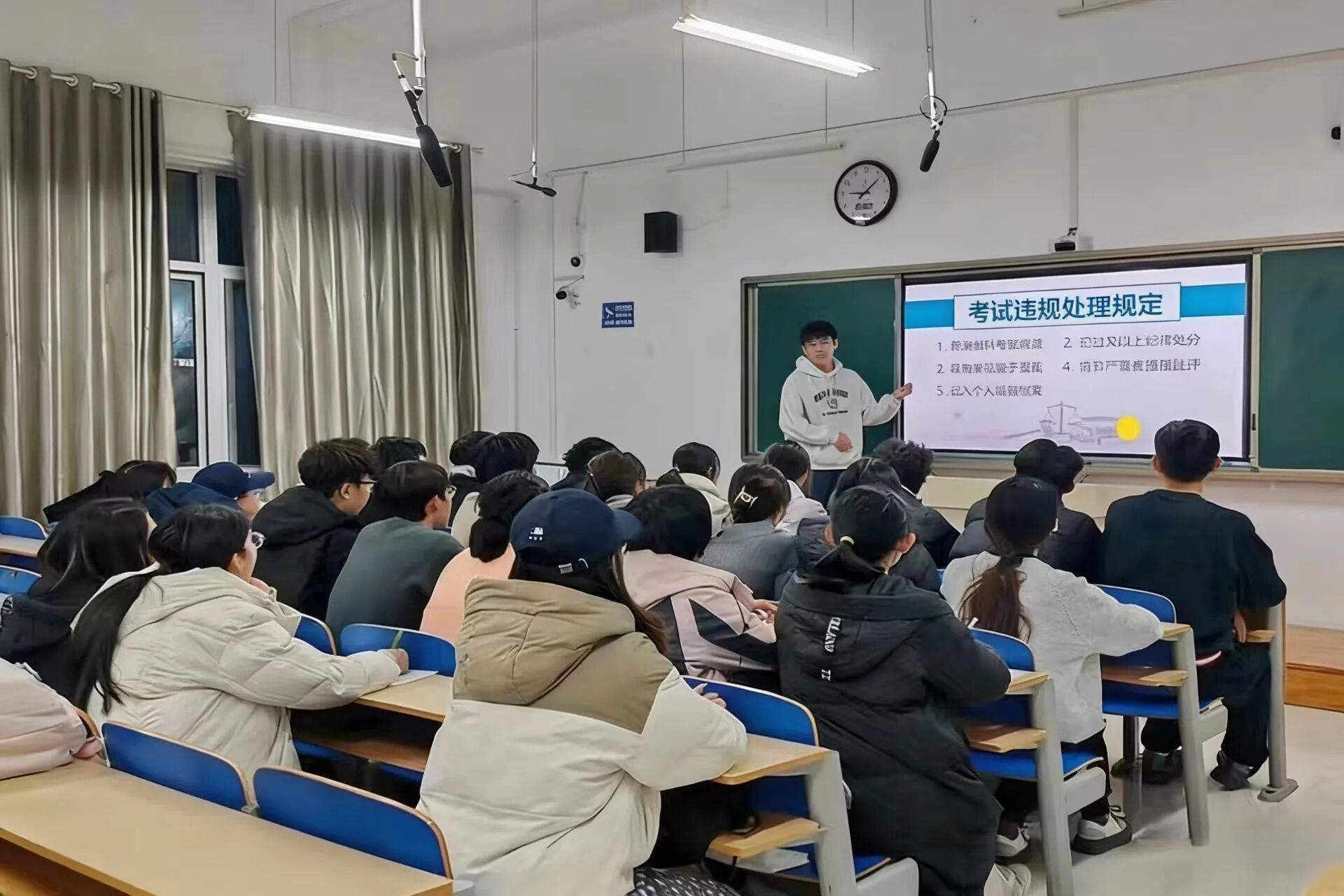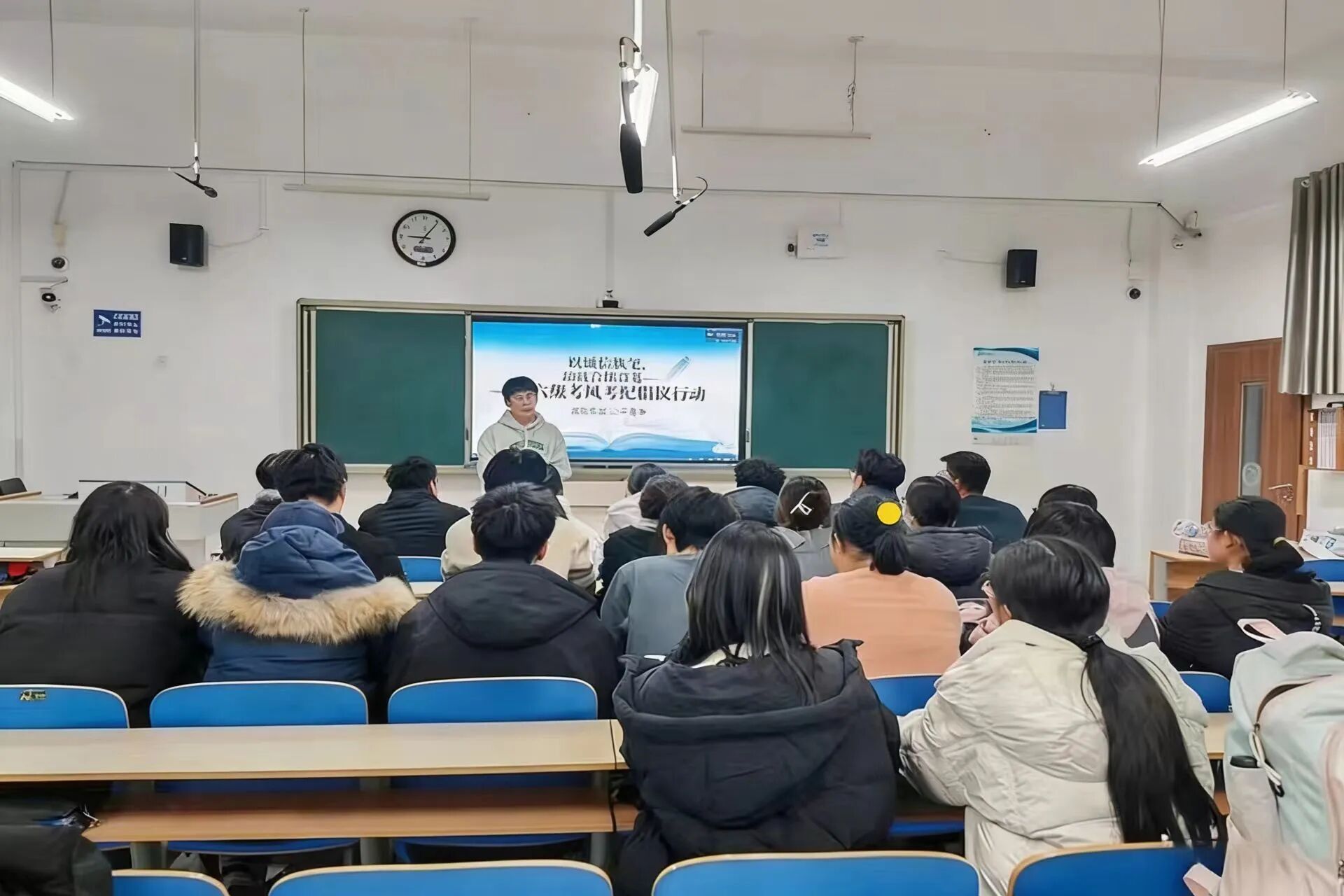 于6#A305教室举办“以诚信执笔 绘就合格答卷”四六级考风考纪倡议活动。 活动紧扣考风考纪教育核心,优秀学生代表率先围绕考风考纪建设的重要意义展开解读,深刻阐明严守考纪是维护考试公平公正的关键前提,更是培育学生诚信品质、营造优良学术氛围的内在要求。同时,学生代表还明确界定携带通讯工具、抄袭作弊、违规替考等违纪行为,并详细宣讲相关处理规定,为全体学生敲响纪律警钟。 活动现场氛围庄重有序,全体参与学生依次签署《诚信考试承诺书》,并集体宣读诚信考试倡议书。铿锵誓言传递出学子们拒绝舞弊、公平竞争的坚定决心,进一步夯实了诚信应考的思想自觉。互动答疑环节中,学生们围绕四六级考试流程、规则细则、应急处理方式及备考重点等疑问踊跃提问,现场工作人员结合考试要求逐一耐心细致解答,精准回应学生关切,帮助学生全面掌握考纪要点与备考关键,确保考纪要求真正入脑入心、见行见效。 此次活动将考纪教育与学风建设深度融合,既全面覆盖核心教育要点,又以丰富形式提升教育实效。在此,学院殷切期望全体考生秉持诚信之心,沉着应战、从容作答,用真实成绩书写青春答卷。预祝各位学子旗开得胜,顺利通过考试,让诚信之花绽放在逐梦征程的每一站。 (供稿:王彤 张旭 摄影:*小妲己直播