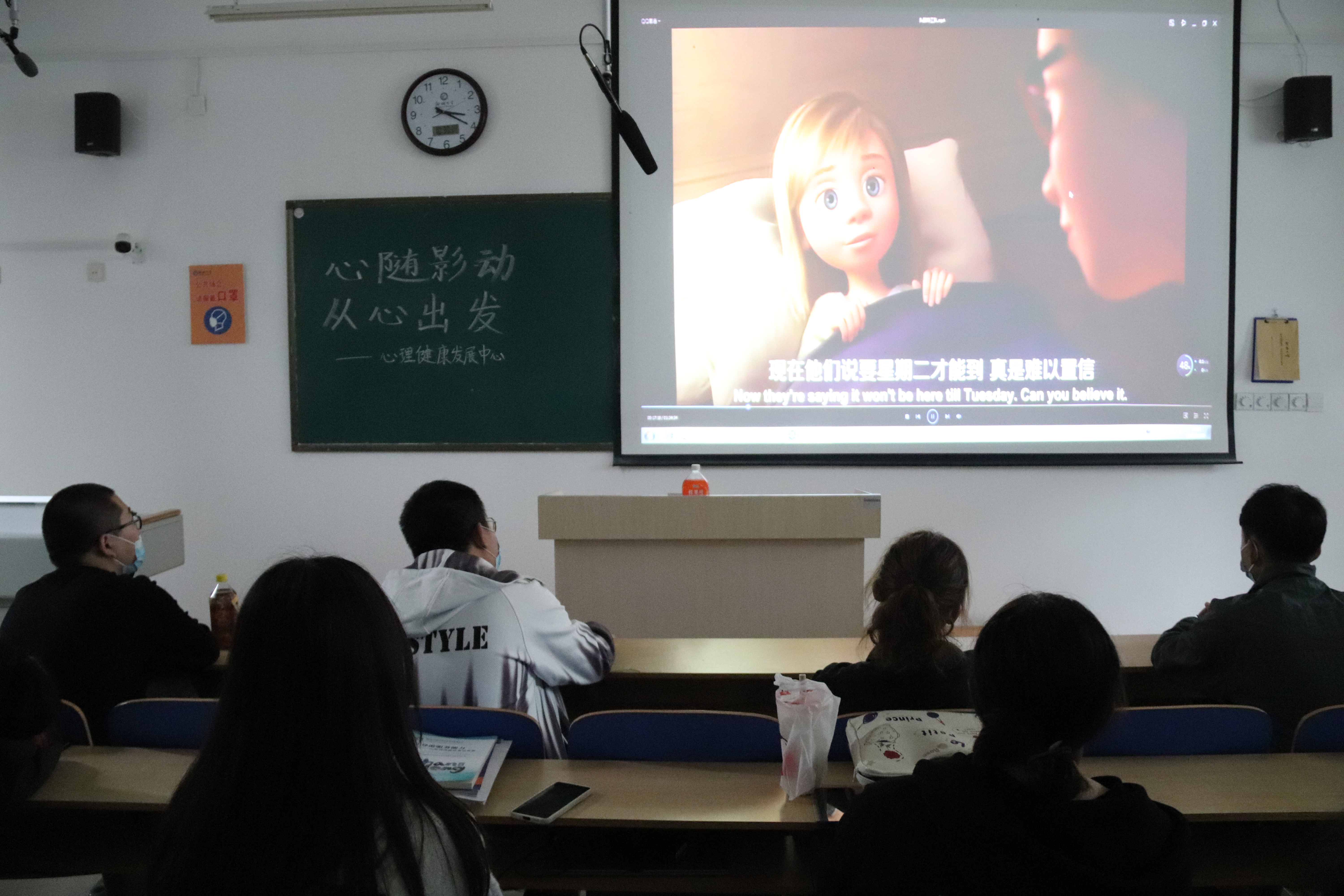 举办“心随影动 ,从心出发”心理影院活动。 活动伊始,活动负责人组织同学们间隔就坐,强调观影纪律,禁止交头接耳,大声喧哗,配合防疫要求。待同学们安静后,活动负责人开始播放影片《头脑特工队》。这是一部极具感染力,积极向上、充满力量的心理电影,讲述的是一名小女孩莱莉和她头脑中五个情绪小人:乐乐、忧忧、怕怕、厌厌、怒怒之间的奇妙故事,展现出不同的情绪对我们日常行为和做事方式的重要影响,揭示了青少年成长期间不同情绪的融合。观影期间,同学们的情绪随影片的情节跌宕起伏,在看到怒怒被激的火冒三丈之时大家相视一笑,在看到莱莉头脑中的幻想朋友“冰棒”牺牲自己,助乐乐登上平地,重回大脑中枢,带给莱莉快乐的情绪时,很多同学都热泪盈眶。《头脑特工队》这部电影通过诙谐幽默的故事情节,让同学们认识到每个人头脑里都会有喜怒哀乐等基本情绪,正确理解每个情绪,特别是忧伤的作用,对每个人的身心发展至关重要。活动负责人呼吁同学们在生活中要以正面情绪为主,但也要接纳负面情绪,保持积极向上的心态,过不一样的精彩生活。 与心灵相约,与健康同行。本次活动的成功举办,帮助同学们在轻松愉悦的环境中学习丰富的心理健康知识,引导同学们正确应对与处理自己的情绪,构建积极健康的心理状态,培养正确的生命价值观,保持对学习和生活的乐观态度,在未来的日子里接续奋进,更展风采。 (图文:岳珍珠 初审:吴志钰 复审:高晓薇 终审:巨国运)