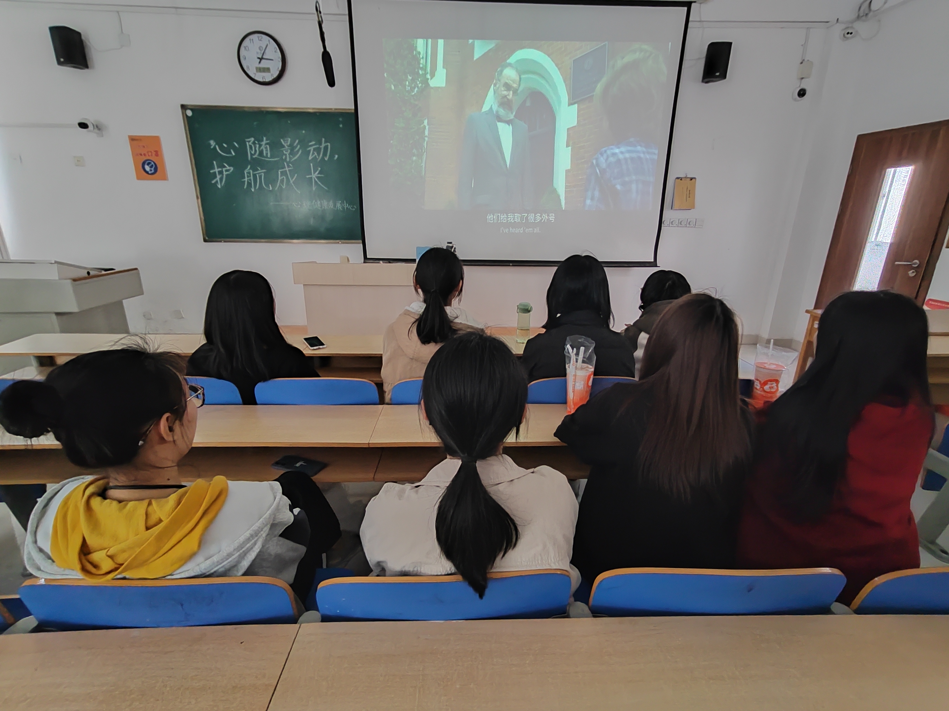 于6#A304教室开展“心随影动,护航成长”心理观影活动。 随着灯光变暗,荧屏渐起,同学们讨论声渐停,本次活动正式开始。《奇迹男孩》讲述了一个经历多次手术容貌受损,但拥有美丽心灵的十岁小男孩克服难以想象的困难,改变别人对自己的看法和偏见的温暖故事。整个故事诠释着善良,勇敢,尊重,友谊和爱。在影片播放过程中,同学们认真观看,被电影中扣人心弦的情节与画面所吸引,当看到主人公获得年度好学生奖状时,大家纷纷为他欢呼。观影结束后,主持人与同学们进行互动,展示多种缓解心理压力的方法,积极引导同学们关注心理健康问题,丰富心理知识。最后,主持人进行活动总结,呼吁大家学习影片中的主人公精神,以自信昂扬的心态去学习和生活。正如本片作者奥古斯特所说:“每个人一生都至少应该获得一次全场起立为之鼓掌的机会,因为我们都胜过了这个世界!” 本次活动通过观影的方式帮助同学们了解更多心理知识,同时抒发情感,放松自己。在寓教于乐中提高了大学生对于心理健康的认识,有利于帮助同学们保持积极健康的心理状态,正确处理生活学习中所面临的各种压力。 (图文:岳珍珠 初审:吴志钰 复审:和稀如 终审:辛超)