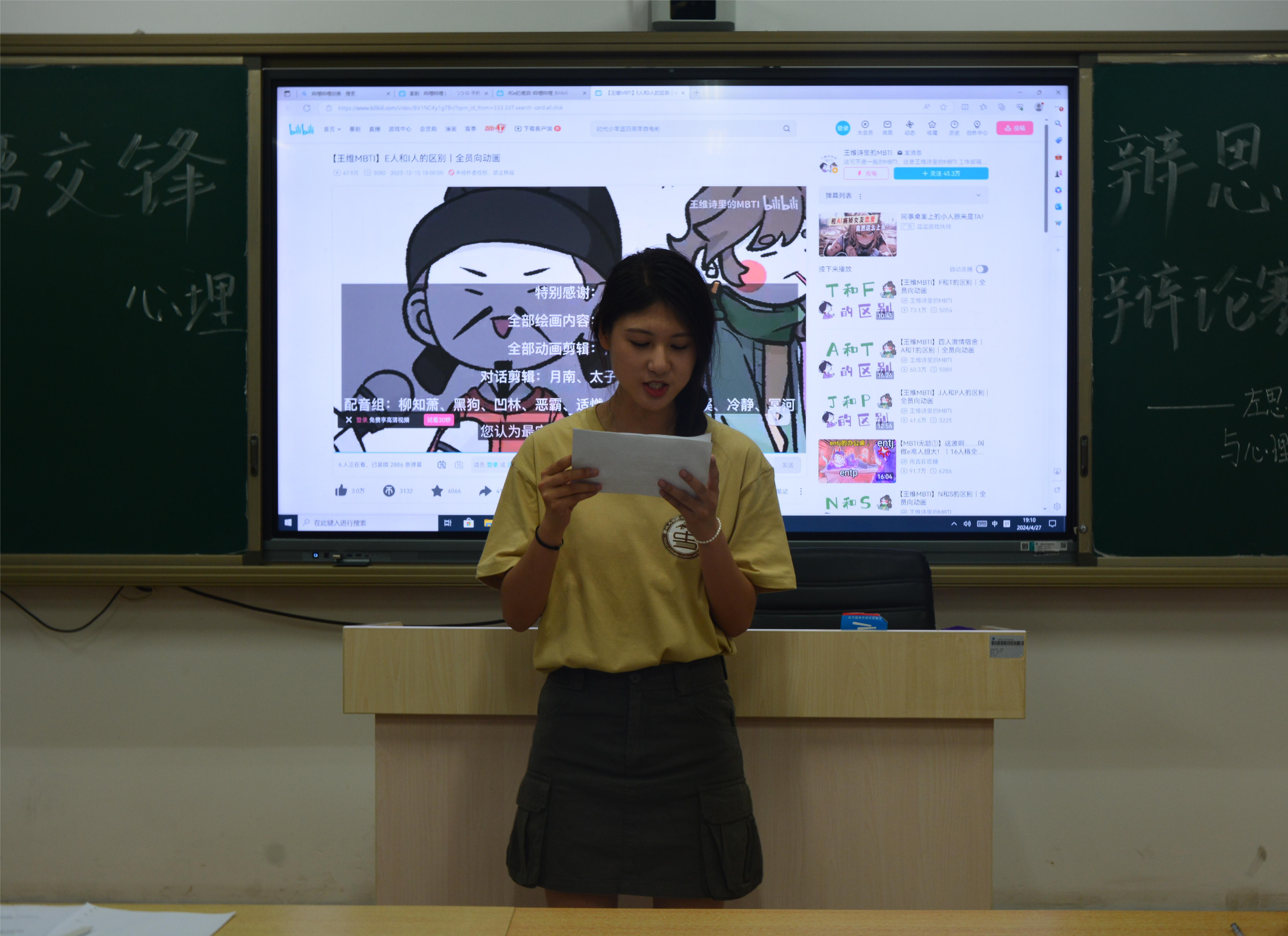 于6#A305教室举办“心语交锋,辩思共鸣”心理辩论赛活动。 此次活动围绕“做一个‘e’人更好还是‘i’人更好”展开辩论,辩论的主题结合了时下火热的话题“MBTI”,可以激起学生思考兴趣,满足学生认识自我、发展自我的需求。辩论开始前,主持人介绍本次辩论赛的规则,同时播放视频,帮助学生初步了解“e”人和“i”人的区别。此次辩论正方所持观点为“做个‘e’人更好”,反方所持观点为“做个‘i’人更好”。双方一辩开篇立论,明确各方核心观点,从多方面提供理论支持,奠定整场辩论赛的基础和方向。在二辩驳论和质辩环节,反方辩友根据“i”“e”不同性格类型分析他们的性格特点,在思考认知角度说明“i”人的性格优势。正方辩友引用诗句“独学而无友,则孤陋而寡闻”驳斥反方观点,揭示对方在论证中的不足。自由辩论环节,双方辩友交替发言,聚焦“‘e’人具有较强的社交能力”“‘i’人善于在独处中反思”“‘i’人给其他人带来的负担较小”等关键性论点进行辩论。双方交锋激烈,唇枪舌剑,为在场学生提供一场视听盛宴。总结陈词阶段,双方四辩对全场辩论赛进行梳理概括,重申各方的观点和论证。最后,主持人简要说明此次辩论主题的选择旨在引导学生树立正确的性格认知。无论是内向型还是外向型的性格特点都有其独特优势,性格无优劣之分,理解并欣赏这些差异可以促进更有效的合作和更和谐的人际关系。 此次活动的顺利举办,有利于帮助学生更好地了解自己,调整心理状态,缓解因错误的性格认知而产生的消极情绪,提高自我认知和发展潜力,促进身心健康全面发展。 (供稿:王舒心 初审:岳珍珠 复审:李友怡 终审:尤姗姗)