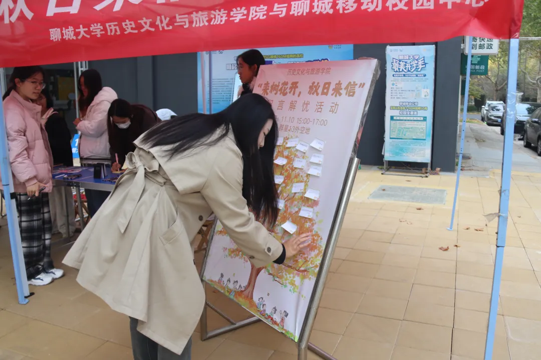 为缓解同学们的心理压力,合理倾诉内心的烦恼,促进身心健康发展,11月10日,我院与聊城移动校园中心共同举办“栾树花开,秋日来信”留言解忧活动。 活动负责人结合相关案例向学生讲解了几种基本情绪的重要作用,为引导学生正视自身的情绪难题,负责人鼓励学生将个人不良情绪和困扰以文字形式表达出来。对此,同学们积极响应,纷纷在信笺上写下心中的疑虑与困扰,并将这些心理信件投入指定的收集箱内。活动负责人对现场收集的信件进行暖心回复并进行分类整理,后期会根据不同类别问题制作相关主题的推文。 负责人还组织学生写下心愿,将其粘贴在栾树展板上,同学们认真地书写着自己的梦想与期待,这些愿望字迹工整,充满力量,不仅展现了他们积极向上的精神风貌和对未来的美好憧憬,还帮助他们认识到积极的自我表达对心理健康的价值与意义。 此次活动的顺利举办,不仅为同学们提供了一个情感交流和心理疗愈的空间,有效减轻了他们的心理压力,增强了其情绪调节能力,而且促进了同学们的自我认知和心灵成长,为同学们的身心健康发展奠定了坚实的基础。 (供稿:孙蕾 王舒心 摄影:孙蕾 王舒心 初审:王舒心 复审:张程程 终审:尤姗姗)