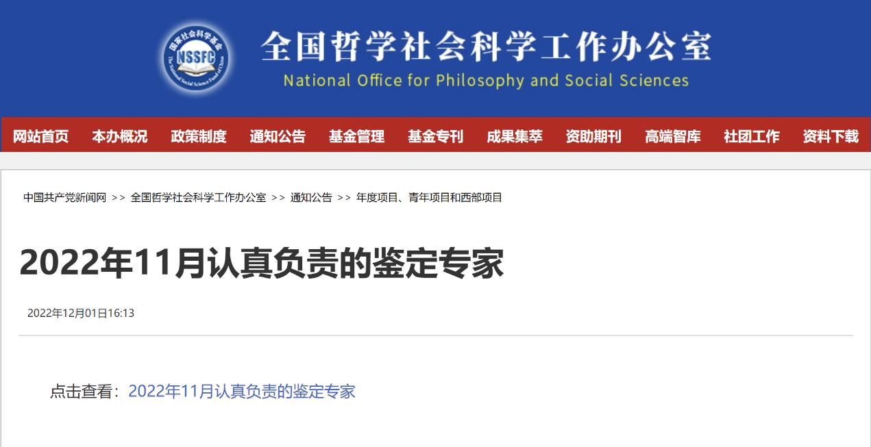 近日,全国哲学社会科学工作办公室公布了2022年11月“认真负责的鉴定专家”,小妲己直播