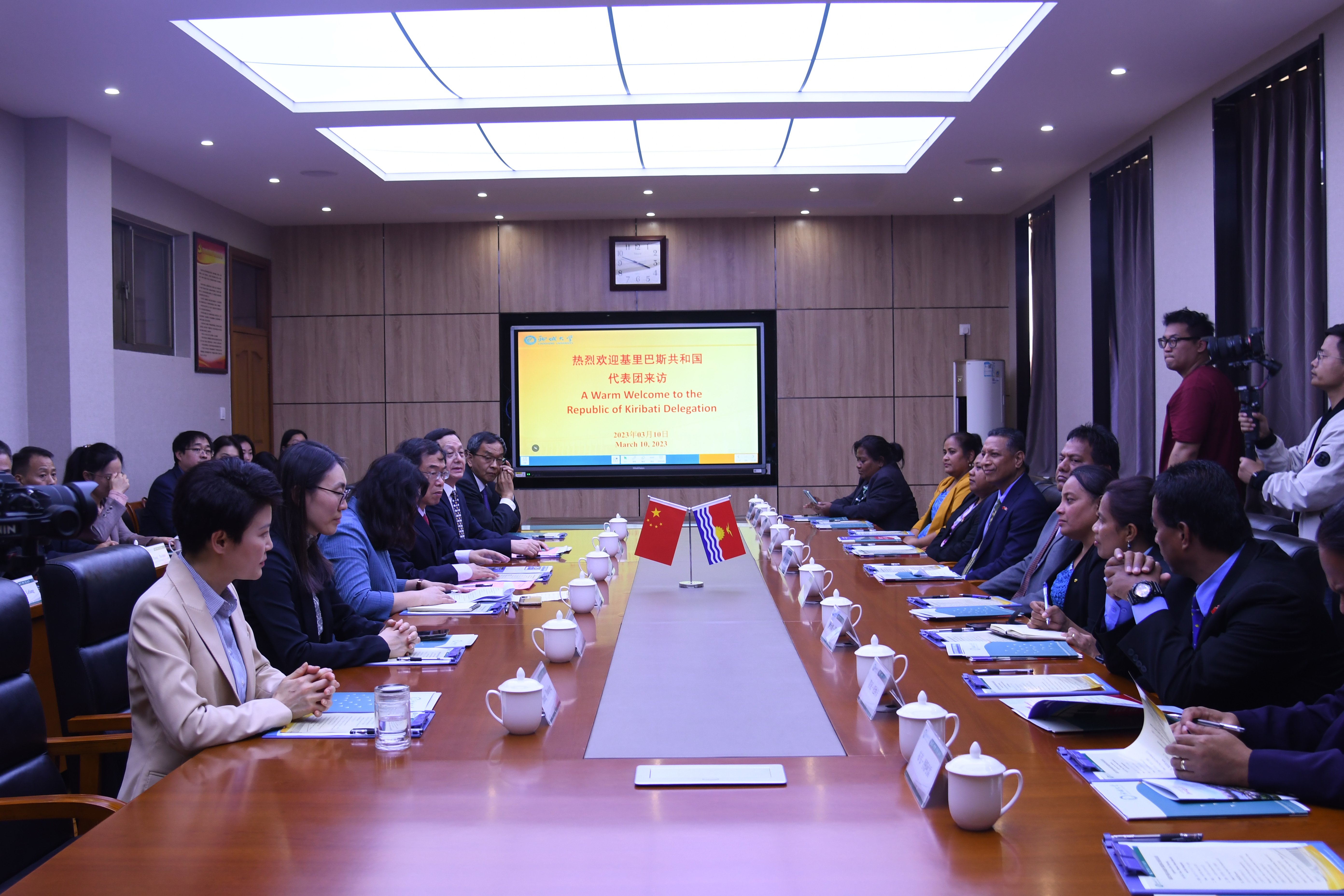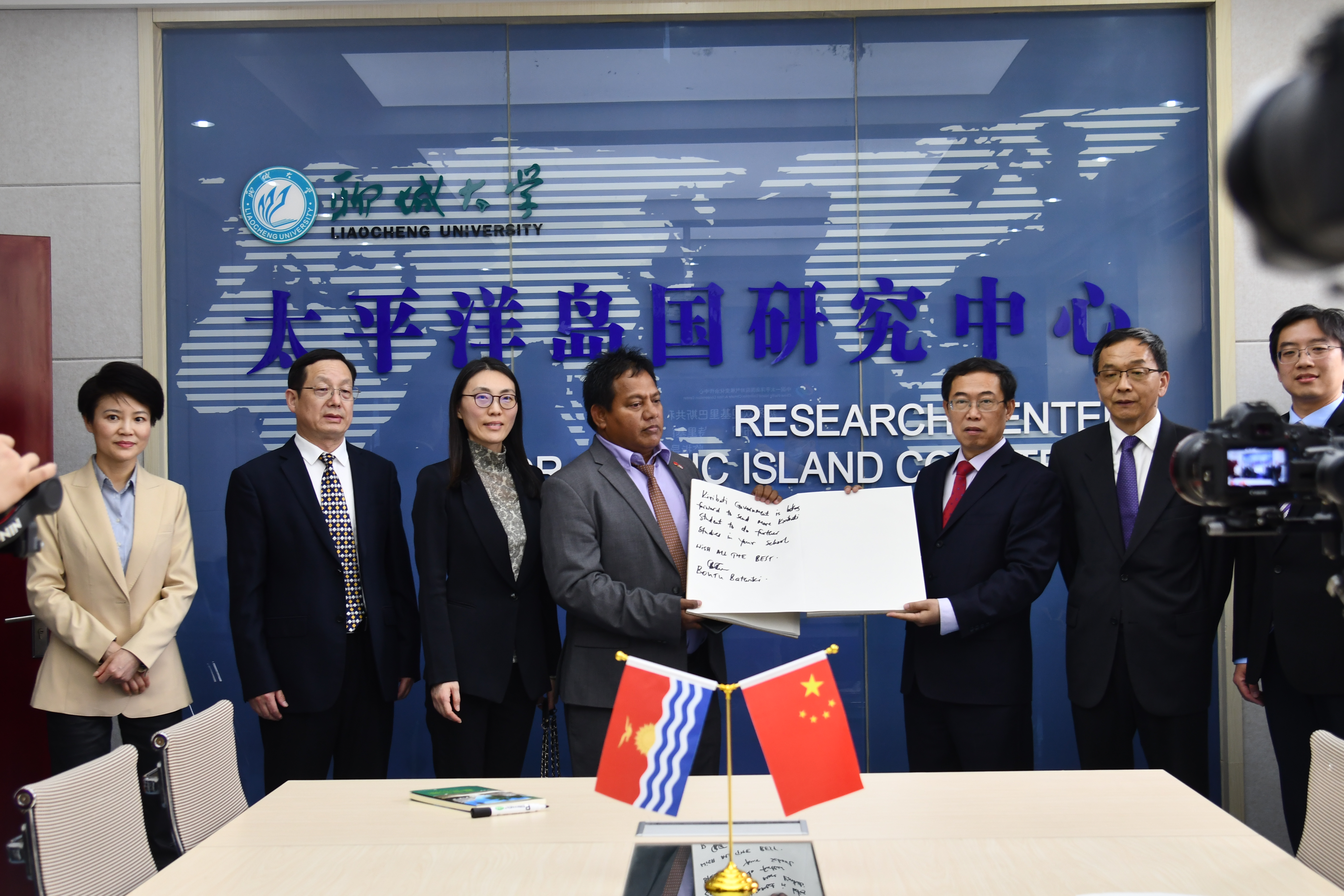 太平洋岛国研究中心,已经在人员培训、学术交流、物资援助等方面开展了大量卓有成效的工作。他表示,学校将继续依托太平洋岛国研究中心深化太平洋岛国研究,希望能够与基里巴斯加强合作,携手应对气候变化,为构建更加公正合理的全球治理体系贡献力量。学校欢迎更多的基里巴斯青年继续来校交流学习深造,为中基人文交流作出更大贡献。 布图•巴特里基对我校的热情接待表示感谢,他期待双方持续加强国际交流与合作,希望我校开展更多的奖学金计划和学生交流项目,并能够在应对气候灾难研究方面提供更多的反馈和合作。 座谈会上,双方互赠了表达美好祝福和民族特色的礼品。 来访期间,代表团一行在我校参观了中国—太平洋岛国应对气候变化合作中心和聊城毛驴高效繁育与生态饲养研究院,并与我校师生开展文艺联欢。参访和演出活动获得了基里巴斯代表团的高度赞赏和评价。 太平洋岛国研究中心、国际合作交流处、*小妲己直播