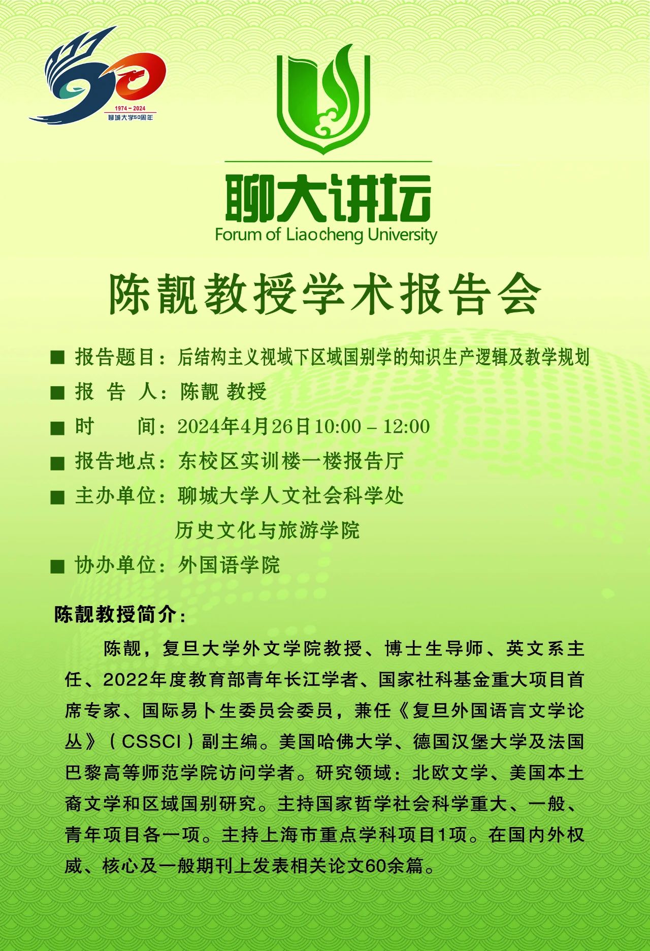 讲座预告丨陈靓教授应邀做客聊大讲坛