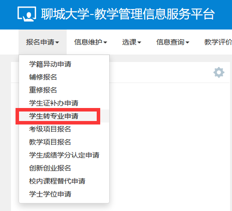 1.登录教务系统,打开报名申请——学生转专业申请