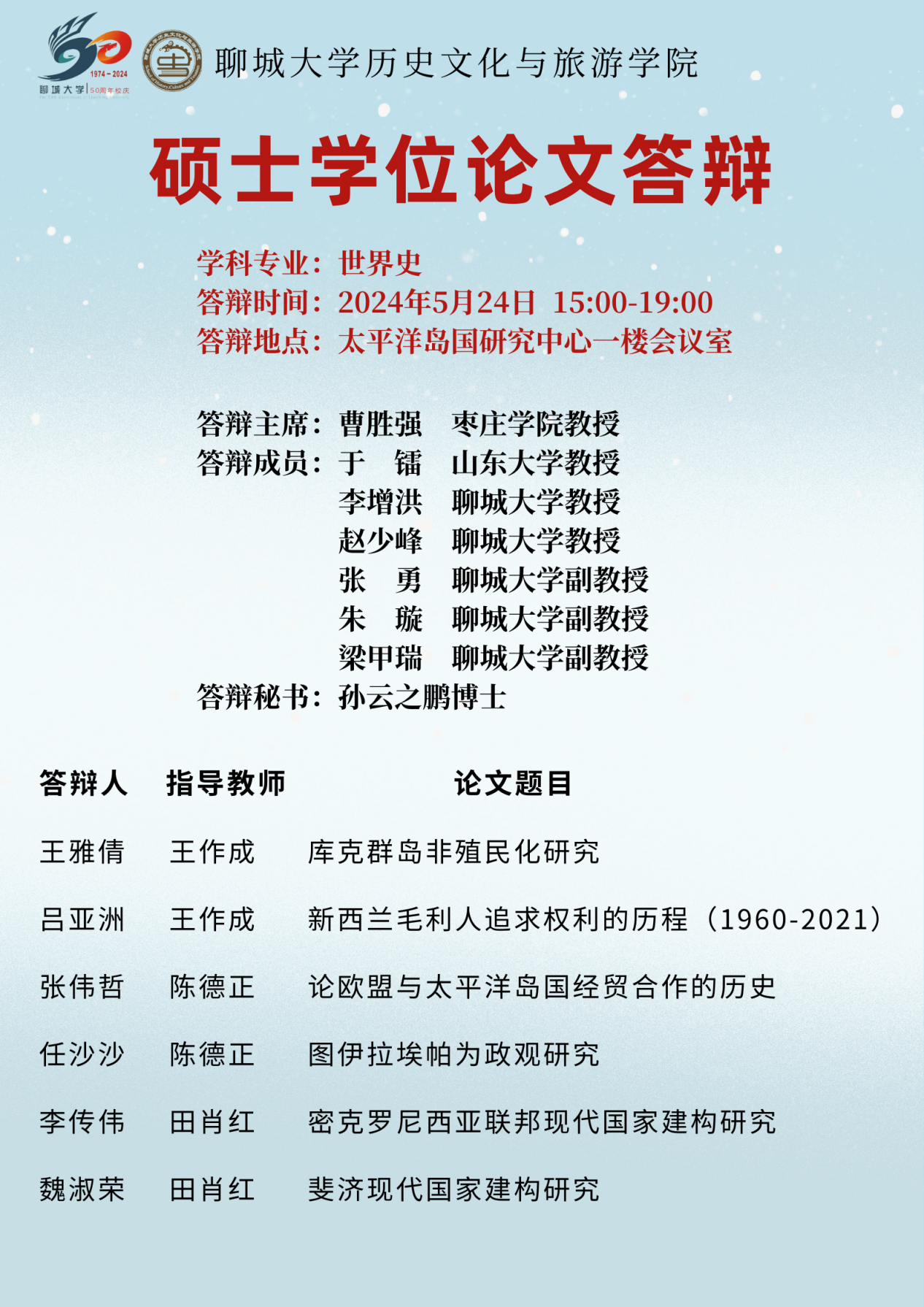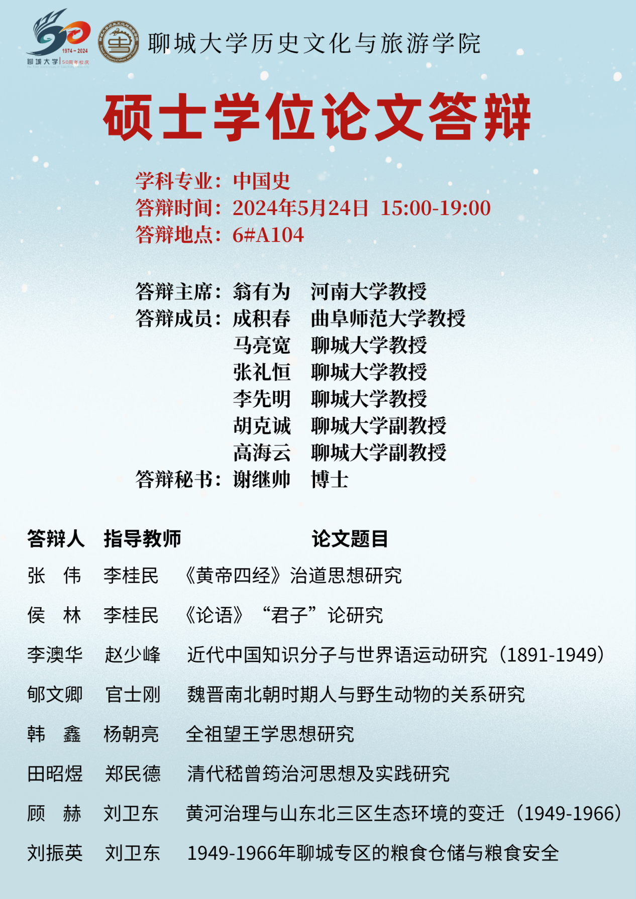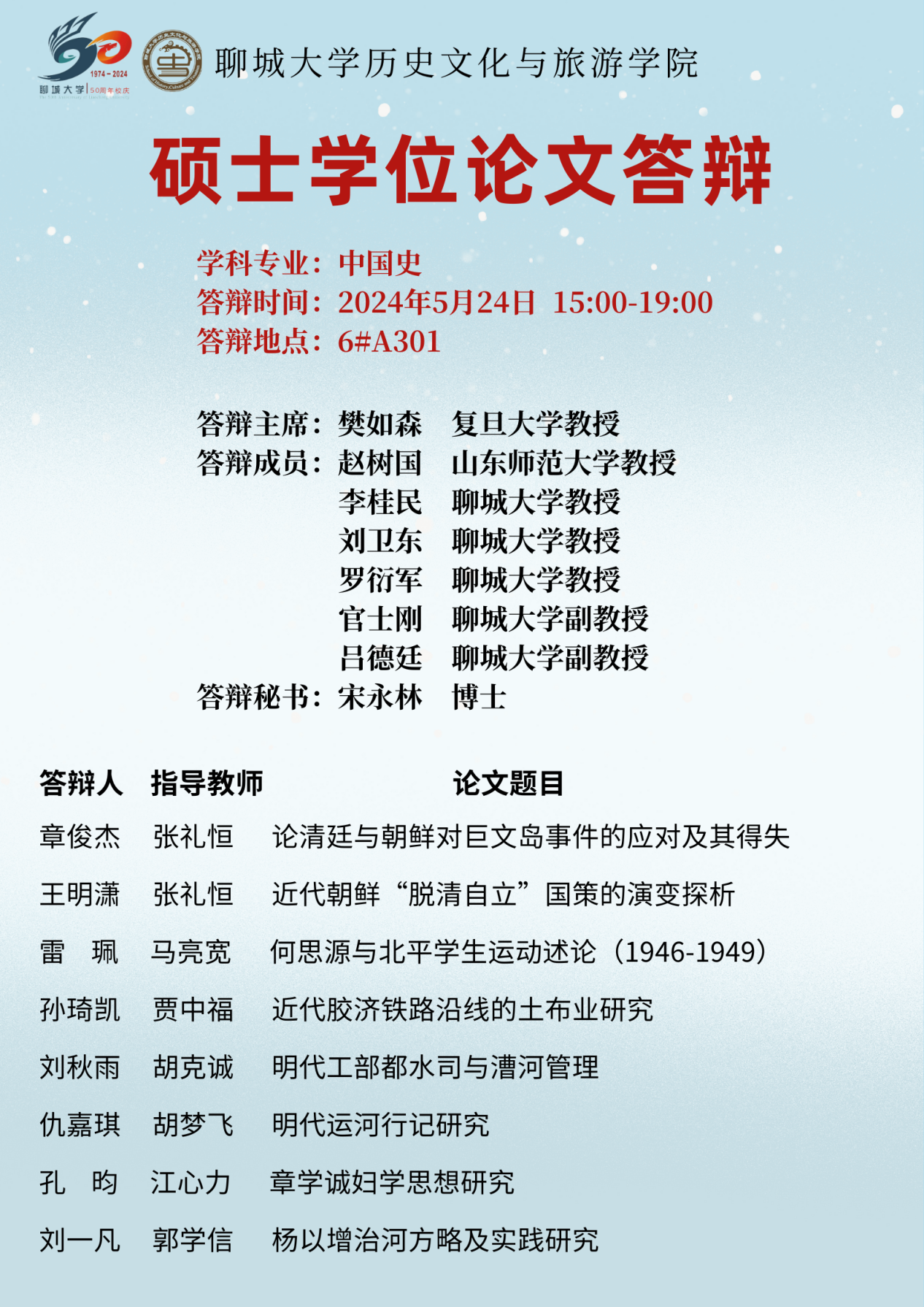 举行了2024届硕士研究生学位论文答辩会。本次答辩会邀请到中国社会科学院大学、复旦大学、山东大学、河南大学等知名高校专家学者莅临指导,22级、23级部分硕士研究生参会旁听。 答辩会上,同学们分别从选题意义、论文框架、创新之处等方面对毕业论文进行陈述;各答辩委员认真负责,以高标准、高质量、高水平、高要求为宗旨,分四个场次对28位同学的毕业论文进行了认真的评审和建议,充分展示了答辩委员会严谨的治学态度和同学们良好的史学素养。 本次答辩会程序规范、秩序井然,小妲己直播