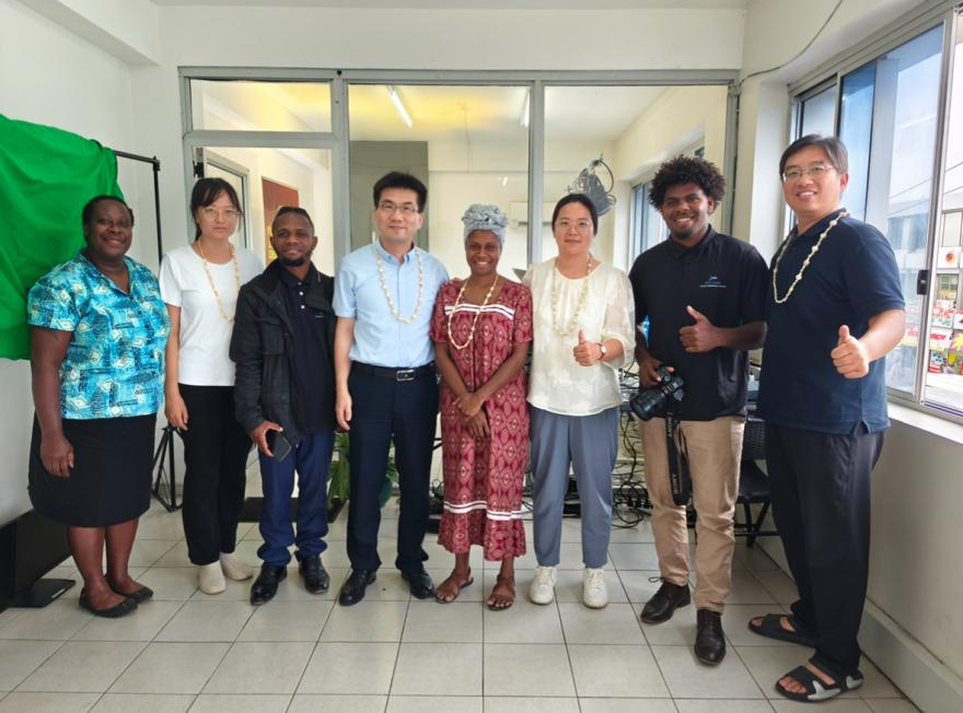 区域国别研究院等大力支持。 校际交流成果显著 在瓦努阿图理工学院、南太平洋大学瓦努阿图分校、南太平洋大学所罗门群岛分校和所罗门国立大学等教育机构的校际交流中,团组与各校领导进行了深入座谈,就师生交流、科研合作及校企合作模式等议题达成共识。 在瓦努阿图,团组访问了南太平洋大学孔子学院艾玛卢校区孔子课堂,并与公派教师崔惠琼、乔亚晓进行了座谈。此次深入交流旨在了解当地的汉语教学与推广情况,并探讨中国高校如何进一步支持孔子学院在瓦努阿图社区的深入发展。崔惠琼和乔亚晓老师分享了他们在汉语教学中的经验和面临的挑战,同时表达了对加强中瓦文化交流的积极态度。团组还前往瓦努阿图理工学院,与后勤部负责人Jacob进行了深入交谈。Jacob详细介绍了学院的教师、学生及学科发展情况。尽管目前该学院尚未有中国教师参与教学工作,但Jacob表达了对中国教师未来加入的期盼。在所罗门群岛,团组与所罗门国立大学执行副校长Eric、环境系主任John、经济与旅游系主任Jerry、自然资源系负责人Lyndon、所罗门群岛渔业部Miechlle Lam等专家联合举行第三届小岛屿国家可持续发展论坛。大家围绕主要关切的气候问题展开了讨论,双方就未来的合作方向进行了深入交流。所罗门群岛国立大学期盼与小妲己直播