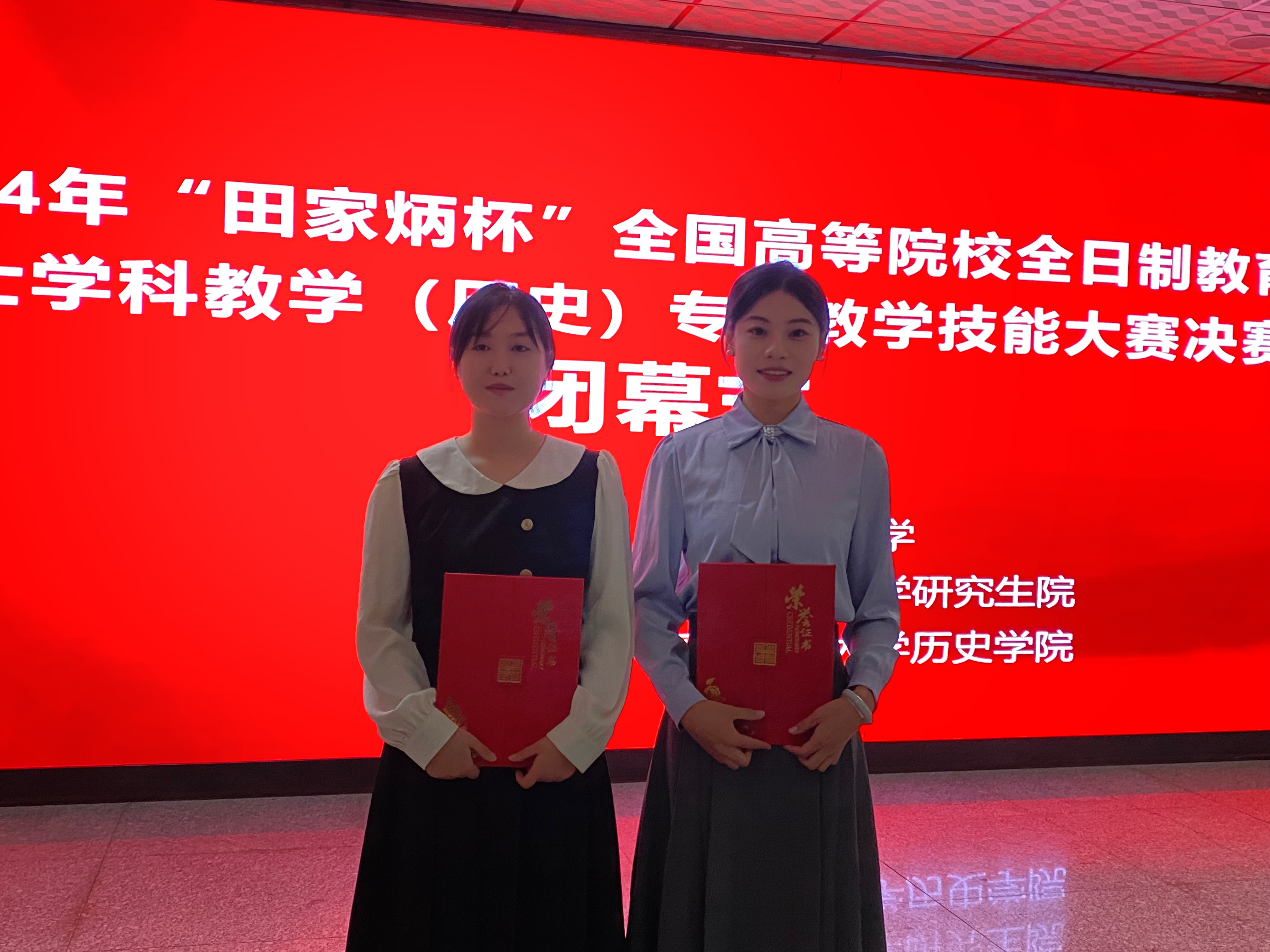 2023级研究生韩彩云荣获二等奖,张琦荣获优秀教学设计奖,翟桂金老师荣获优秀指导教师称号。 “田家炳杯”教学技能大赛是目前国内层次最高、规模最大的教育硕士教学技能竞赛,旨在提升教育硕士研究生教育教学实践能力,促进培养院校之间相互交流学习、共同发展。 较之以往,本次田家炳杯(历史)硕士专业教学比赛有很大不同,一是赛制新、挑战大,它采取了和田家炳杯本科生教学比赛一样的赛制,即实行随机抽题、限时备课、现场讲课和答辩的竞赛方式,非常考验参赛选手的专业素养和应变能力;二是规模大、级别高,本次比赛,包括复旦大学、上海交大以及六大教育部直属师范类院校在内的83所高校共计160名教育硕士参与了激烈角逐。另外,本次比赛实行评委和选手双匿名、随机抽取出场顺序的方式,保证了比赛的公平公正性。 为筹备本次比赛,学院对2022和2023级研究生做了全面动员,重点选拔,并安全经验丰富的老师组建专门指导团队,同时还邀请专家学者和一线教学名师来现场指导点评,对参赛选手进行专业性辅导。指导教师更是认真负责,通过充分利用线下和线上资源,精心梳理每一个教学设计,并全程陪同参赛选手进行实战性练兵。两位选手更是全力以赴,互助共享,在赛场上展示了较高的专业素养和教学水平,取得如此成绩是师生四人共同努力的结果。 通过本次比赛,参赛选手们不但提升了教学设计水平和课堂教学能力,也加深了对当前中学历史教学课改理念的理解,开阔了眼界,拓宽了思维。 供稿:*小妲己直播