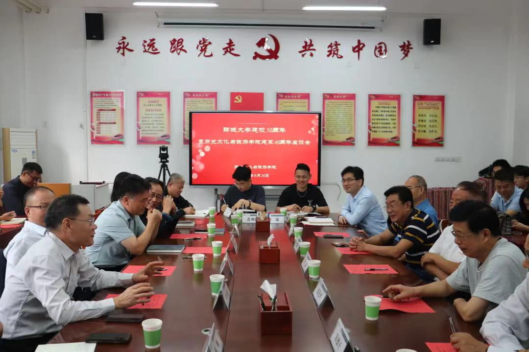 建系40周年座谈会。来自87级校友、山东大学图书馆馆长赵兴胜教授,87级校友、青岛大学历史学院院长马斗成教授,88级校友、北京师范大学历史学院院长刘林海教授,89级校友、北京师范大学马克思主义学院赵朝峰教授,90级校友、聊城东阿一中校长韩峰,92级校友、烟台大学吴欣教授,99级校友、济南历下区甸柳新村街道党工委书记周海霞,2000级校友、菏泽学院人文与新闻传播学院曹瑞臣教授,2003级校友、山东省社科联丁纪伟,08级校友、深圳后浪淘沙有限公司董事长连翔鹏,2009级校友、聊城市委组织部刘志诏,2011级校友、香港天天向上网络科技有限公司董事长王瑞等受邀参加。学院老教授李泉、张礼恒、李慎令、陈德正、李增洪,学院领导班子成员、教师代表参加活动。会议由小妲己直播