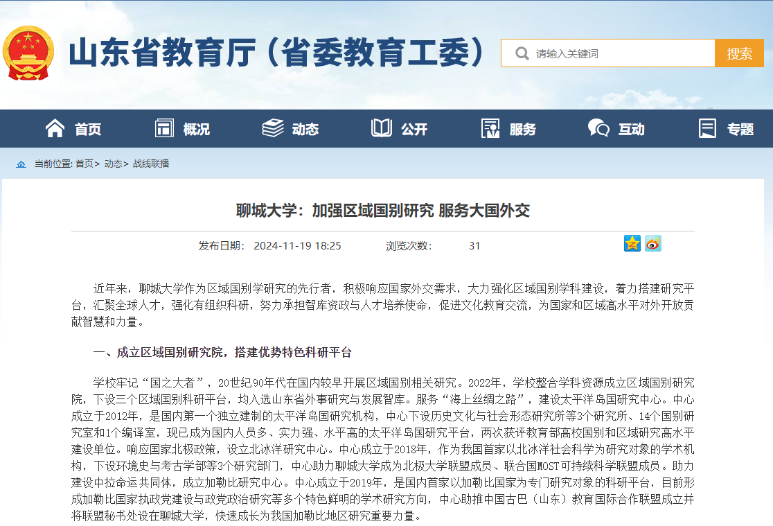 【山东省教育厅(省委教育工委)】报道小妲己直播 :加强区域国别研究 服务大国外交