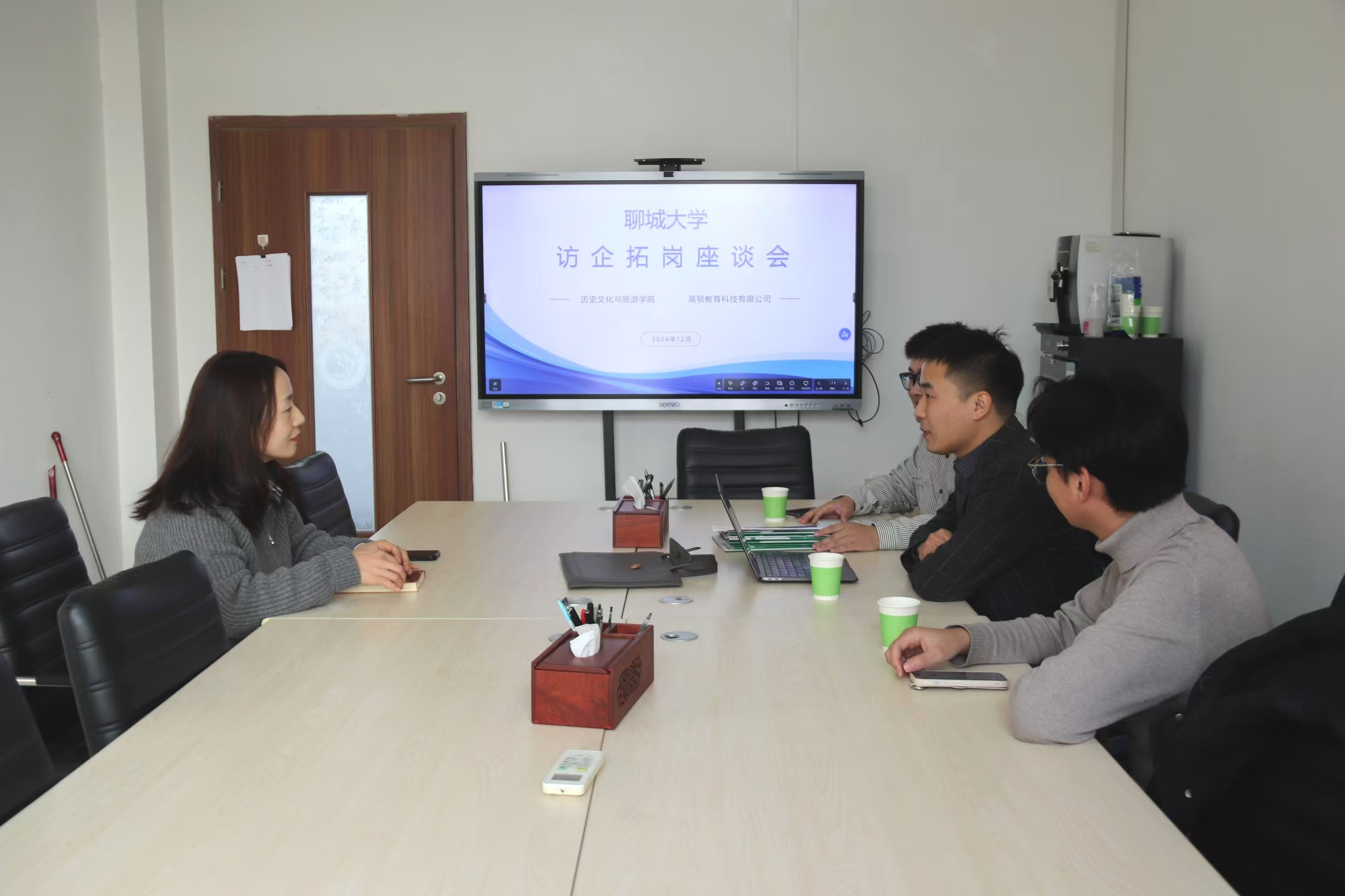 于6#B405会议室举办访企拓岗座谈会。团委书记石晓晗及高顿教育科技有限公司代表参加本次座谈。 石晓晗深入剖析学生在就业过程中面临的问题。对此,高顿教育科技有限公司代表提出一些建设性意见,承诺与学院共同开展公益类宣讲活动,帮助学生全面掌握就业信息。 双方共同探讨大学生就业率下滑、考公考编压力过大等问题。石晓晗指出,当前大学生就业形势严峻,急需多维度提升学生的职业素养和就业竞争力,打造更宽广的就业平台。 双方一致认为,深化校企合作,共同推进人才培养和就业工作,是解决当前本科毕业生就业难题的有效途径。高顿教育科技有限公司代表表示,愿与小妲己直播