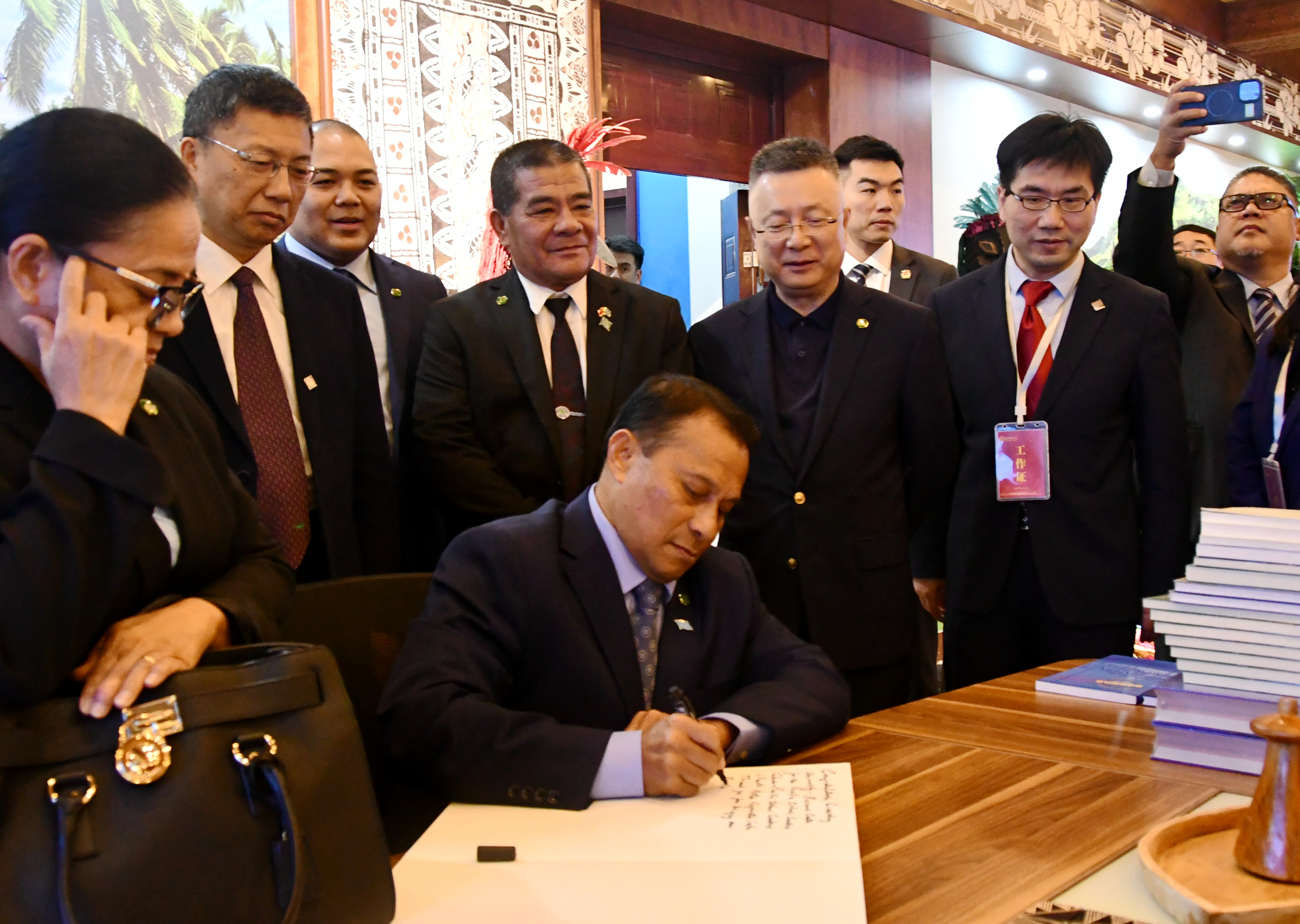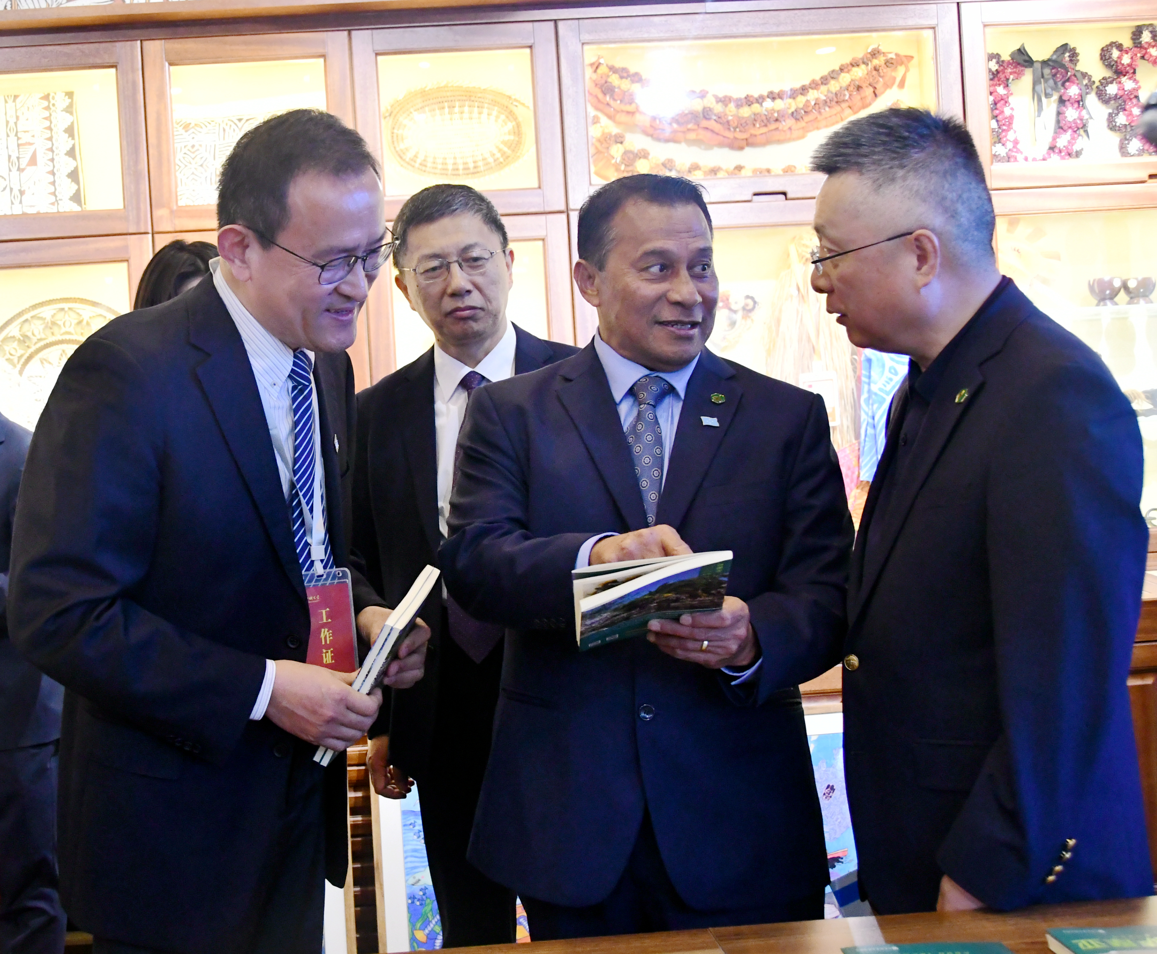 太平洋岛国研究中心,翻阅了中心撰写出版的太平洋岛国列国志丛书。《列国志·密克罗尼西亚联邦》卷的作者丁海彬向阿伦•帕利克赠书。阿伦•帕利克欣然为中国—太平洋岛国应对气候变化合作中心、小妲己直播