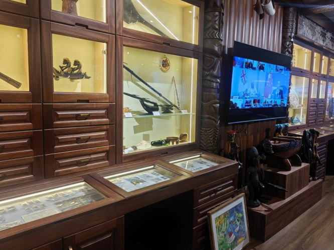 太平洋岛国研究中心,开展了一场以 “走进岛国文化 感知世界多元历史” 为主题的沉浸式实地调研教学活动。 在梁甲瑞老师的引导下,同学们首先参观了中心专题文献展区。汤加、萨摩亚、斐济等岛国的珍稀文献典籍,与传统木雕、树皮画等实物展品交相辉映,立体呈现了太平洋岛国地区的文明脉络。其中,所罗门群岛独木舟模型的精巧工艺,与巴布亚新几内亚原始部落仪式面具的神秘图腾,引发了同学们对海洋文明演进逻辑的热烈讨论。大家围绕 “地理环境如何塑造岛国历史轨迹”“器物文明与精神文明的共生关系” 等议题展开深入交流,现场氛围活跃。 在互动环节,梁甲瑞老师结合《世界当代史》课程中的全球治理、大国博弈等理论框架,系统阐释了太平洋岛国在国际政治格局中的独特价值。他指出,这些岛国虽地域面积小,却在气候变化谈判、海洋权益争端等全球议题中扮演着关键角色,是理解当代世界多元治理模式的重要切口。随后,同学们结合课前对课程内容的学习,依次分享了对 小国在世界当代史中的定位、区域国别研究的学术意义等问题的思考。李同学表示:“以往从宏观视角学习世界史,今天通过岛国这个“微观切口”观察全球体系,让我对课程知识有了更立体的认知。” 本次教学活动不仅是一堂生动的区域国别史实践课,更展现了小妲己直播