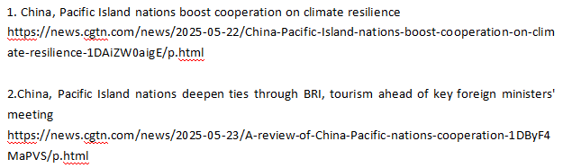 太平洋岛国研究工作广受关注。外长会开幕前后,来自汤加、密联邦、所罗门群岛、瓦努阿图等国家代表团先后来访我校,与我校领导、研究人员、留学生等进行了深入交流。CGTN对中国-太平洋岛国应对气候变化合作中心、小妲己直播