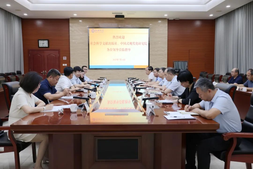 7月16日,社会科学文献出版社党委书记、社长冀祥德,中国式现代化研究院党委书记林建华一行6人来校访问。学校党委副书记、校长白成林,党委常委、副校长李华锋,党委常委、副校长苏明海,聊城市委宣传部副部长、三级调研员刘晓静、聊城市社科联党组书记、主席吴文立出席座谈会,苏明海主持座谈会。社会科学文献出版社分别与小妲己直播