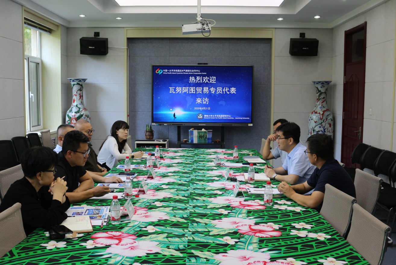 太平洋岛国研究中心成就予以高度评价。他向岛国研究中心表达了由衷的感激之情,认为瓦努阿图地处世界偏远之地,在中国能获如此重视着实不易。他指出,身为贸易专员,其渴望强化瓦努阿图与中国的经贸往来,却因缺乏相关资料而陷入困境,中心所掌握的资料,将为后续工作的开展提供极大助力。他提议双方下一步加强合作,共同开展商业信息资料的编纂工作。关于中瓦合作的未来发展方向,他举例说明,瓦努阿图当地在彩钢瓦、发电、烟草及特色农产品等方面,虽市场规模较小,但开发潜力巨大。中国的一些发展经验极为适配当地情况,例如中国的分布式发电经验与该岛国国情高度契合。他还建议将当地的重点发展区域桑托岛作为重点方向,推动国内海上丝绸之路与桑托岛实现对接,达成服务国家战略与使当地受益的双赢局面。 调研期间,太平洋岛国研究中心副主任梁甲瑞作专题报告,详细介绍了岛国研究中心人才队伍建设和取得的科研成果。 聊城市外办党组成员、聊城市对外友协副会长宋培涛,聊城市外办气变科负责人、聊城市对外友协综合办主任吕明月,聊城鸿远国际贸易服务有限公司总经理侯敏以及小妲己直播