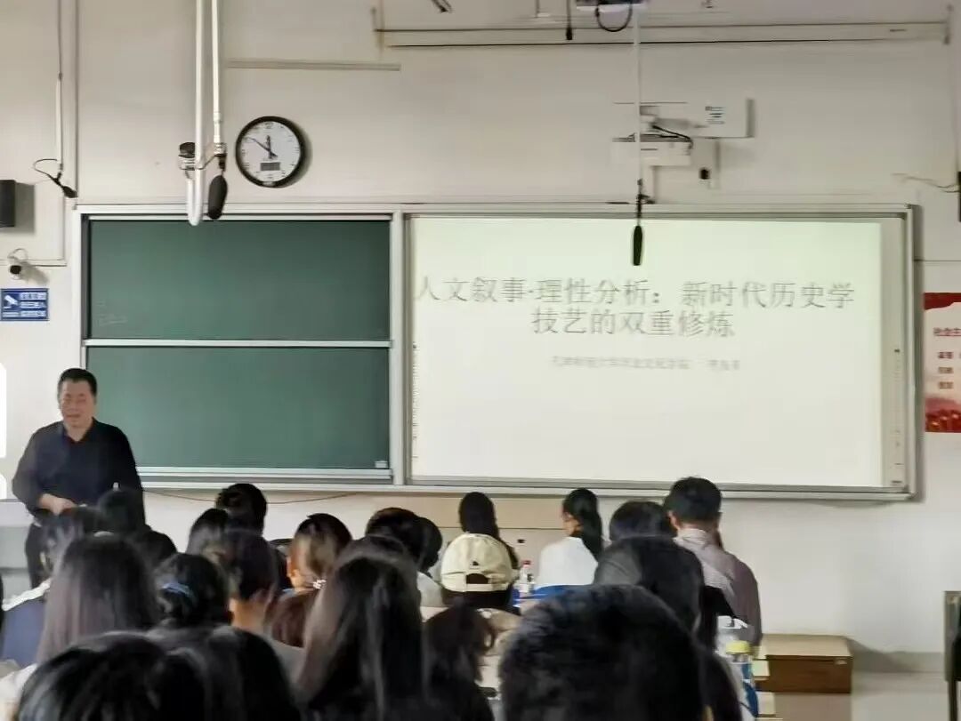 于6#A503教室举办“人文叙事·理性分析:新时代历史学技艺的双重修炼”专题讲座,天津师范大学李友东教授担任主讲人,官士刚副院长担任主持人,2025级历史学专业全体学生参与本次讲座。 李友东教授立足史学研究本质,对历史叙事在当代的实践转型进行了深刻阐发,明确了在技术变革与传播模式剧变的背景下,历史学者向公共叙事者角色转型的必要性。随后,他围绕史学研究的核心矛盾,系统剖析了理性分析与人文叙事之间的辩证统一关系,强调在数字化浪潮下,历史学者不仅要善用现代工具提升研究效率,更应坚守人文精神,在研究中融入价值关怀,传递历史的温度。 在方法论指导环节,李友东教授聚焦“证据观”与“多维思维”两大关键。他通过拆解“二重证据法”的核心逻辑,让学生深刻理解史料辨析的基础性作用;并进一步延伸,详细讲解历时性思维、因果思维与联系思维在研究中的实践路径,引导学生突破“仅还原史实”的局限,学会构建立体、动态的历史认知框架,真正实现从“被动接收知识”到“主动建构思维”的进阶。在坚持理性分析的基础上,注重人文叙事,修炼好历史学的“手艺”。历史系主任吕俊昌对李友东教授的讲座进行总结,同学们与李老师也展开积极互动。 此次讲座为2025级历史学新生的学习和发展提供了专业的指引,不仅拓宽了学生的学术视野,构建起了更全面的历史认知体系,也增强了史学理论素养与研究方法论意识,为今后的学术探索提供了新的视角和方法支撑,而且有助于营造浓厚的思辨氛围与人文气息,为学院历史学人才培养与学科建设注入新的活力。 (供稿:张旭 郭艺泽 摄影:*小妲己直播