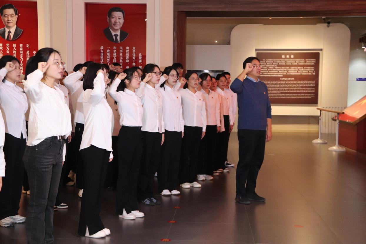 抵达纪念馆后,在讲解员的细致解说下,党员同志们深入了解孔繁森同志两次进藏一心为民的感人事迹。从他在西藏的工作点滴,到他与藏族同胞的深厚情谊,每一个故事都彰显着他服务人民、无私奉献、清正廉洁的共产党人本色,让大家的理想信念愈发坚定。随后众人怀着崇敬之心认真参观展区记录着孔繁森同志事迹的图片与实物令大家深受触动,深刻领悟到作为一名党员应有的初心与使命。最后,全体党员在领誓人带领下面向党旗重温入党誓词学生党员们深受教育深刻认识到要以孔繁森同志为榜样,将个人理想与国家命运紧密相连,为党和人民的事业贡献自己的青春力量。