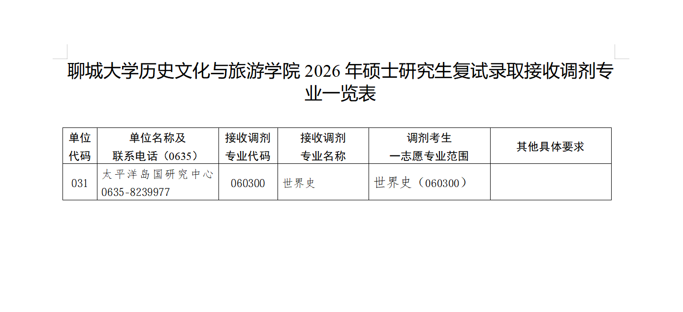 2026年硕士研究生复试录取工作方案》安排,结合本单位实际,就调剂复试录取有关事项公告如下。 一、接收调剂考生的专业 世界史(060300),接收一志愿报考世界史(060300)的考生。 二、复试分数线及比例 1.复试分数线。参加普通计划复试的考生,初试总成绩和单科成绩均须达到A类地区考生分数要求。对“退役大学生士兵计划”考生,在报考专业A类地区考生分数线基础上,对初试总成绩和单科成绩均降20分划定分数线。 2.复试比例。进入复试的考生人数为各学科专业招生计划的300%;合格生源比例不足的,按实际合格生源数组织复试。 三、调剂考生遴选规则 调剂考生须符合《小妲己直播