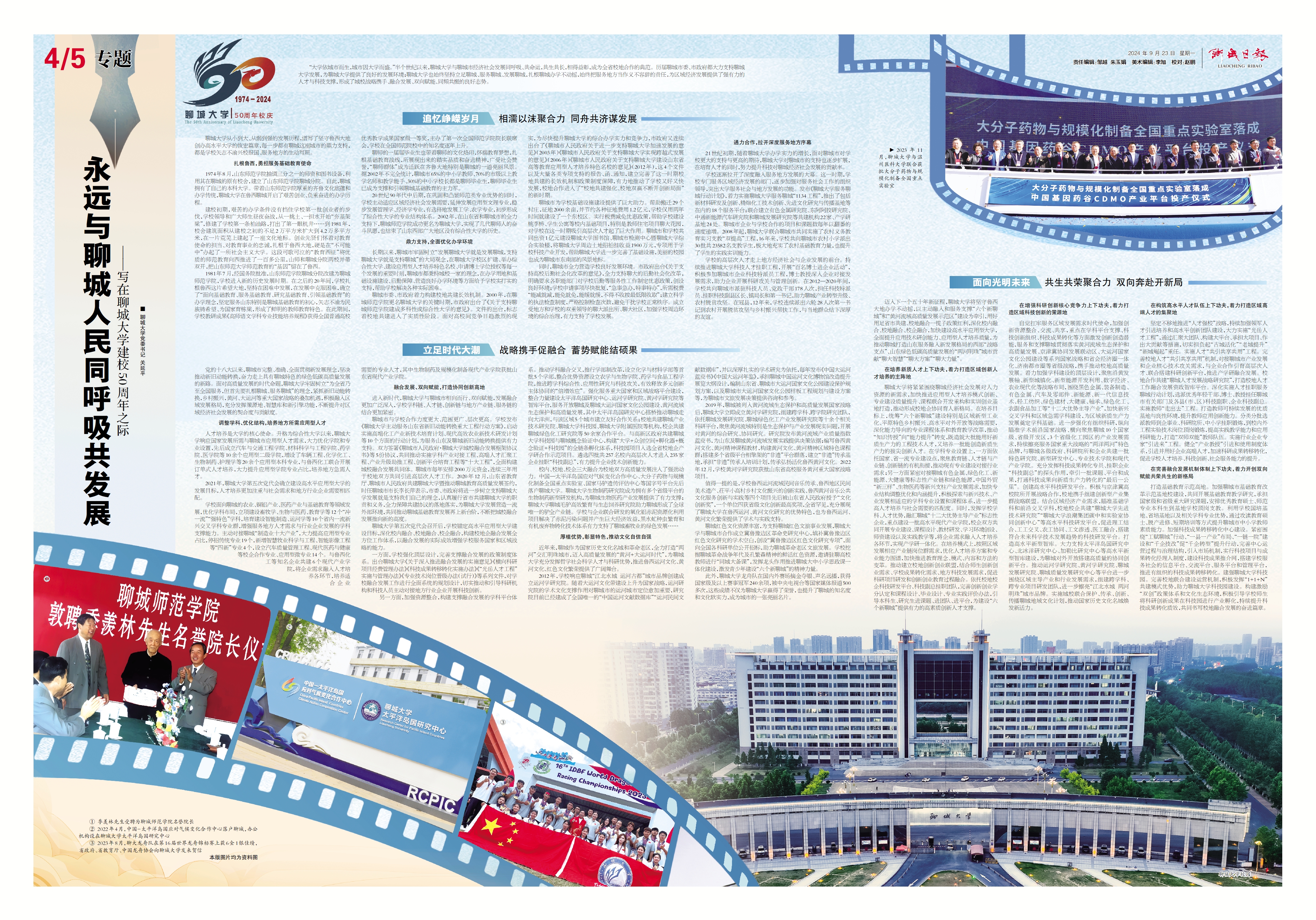 浪潮集团碳中和实验室协同创新中心”等高水平科技研发平台,促进理工结合、工工交叉、农工协同、工文渗透、医工融合,搭建符合未来科学技术发展趋势的科技研发平台。打造高水平新型智库。大力支持太平洋岛国研究中心、北冰洋研究中心、加勒比研究中心等高水平新型智库建设,为聊城对外开放搭建高质量的协同创新平台。推动运河学研究院、黄河学研究院、聊城发展研究院、聊城质量发展研究中心等平台进一步围绕区域主导产业和行业发展需求,组建跨学科、跨专业项目研发团队,进一步擦亮“江北水城 两河明珠”城市品牌。实施城校联合保护、传承、创新、传播聊城地域文化计划,推动国家历史文化名城焕发新活力。 在构筑高水平人才队伍上下功夫,着力打造区域高端人才的集聚地 坚定不移地推进“人才强校”战略,持续加强领军人才引进培养和高水平创新团队建设,大力实施“光岳人才工程”,通过汇聚大团队、构建大平台、承担大项目、作出大贡献等措施,切实担负起“古城活化”“老城提升”“新城崛起”重任。实施人才“共引共享共用”工程。完善校地人才“共引共享共用”机制,对接聊城市产业发展和企业核心技术攻关需求,与企业合作引育高层次人才、联合搭建科研创新平台,推进产学研融合发展。校地合作共建“聊城人才发展战略研究院”,打造校地人才工作融合发展资政智库平台。深化实施人才挂职服务聊城行动计划,选派优秀年轻干部、博士、教授挂任聊城市有关部门及各县(市、区)科技副职、企业科技副总。实施教师“走出去”工程。打造教师可持续发展的优质基地与良性环境,提升教师应用创新能力。分类分批选派教师到企事业、科研院所、中小学挂职锻炼,到校内外工程实验技术岗位顶岗锻炼,提高实践教学能力和应用科研能力,打造“双师双能”教师队伍。实施行业企业专家“引进来”工程。健全“产业教授”引进和使用制度体系,引进并用好企业高端人才,加速科研成果转移转化,促进学校人才培养、科技创新、社会服务能力的提升。 在完善融合发展机制体制上下功夫,着力开创双向赋能共荣共生的新格局 打造基础教育示范高地。加强聊城市基础教育改革示范基地校建设,共同开展基础教育教学研究,承担国家级和省级重大研究课题,安排优秀教育硕士、师范专业本科生到基地学校顶岗支教。利用学校国培基地、省培基地以及相关学科专业优势,通过攻读教育硕士、脱产进修、短期培训等方式提升聊城市中小学教师素质能力。加强科技成果转移转化中心建设。紧密围绕“工赋聊城”行动、“一县一产业”布局、“一链一院”建设和“千企技改”促“千企转型”提升行动,完善中心运营过程与治理结构,引入市场机制,实行科技项目与成果转化经理人制度,建设科技成果推介网,搭建学校服务社会的信息平台、交流平台、服务平台和管理平台,推进有组织的科技成果转移转化。建强小妲己直播