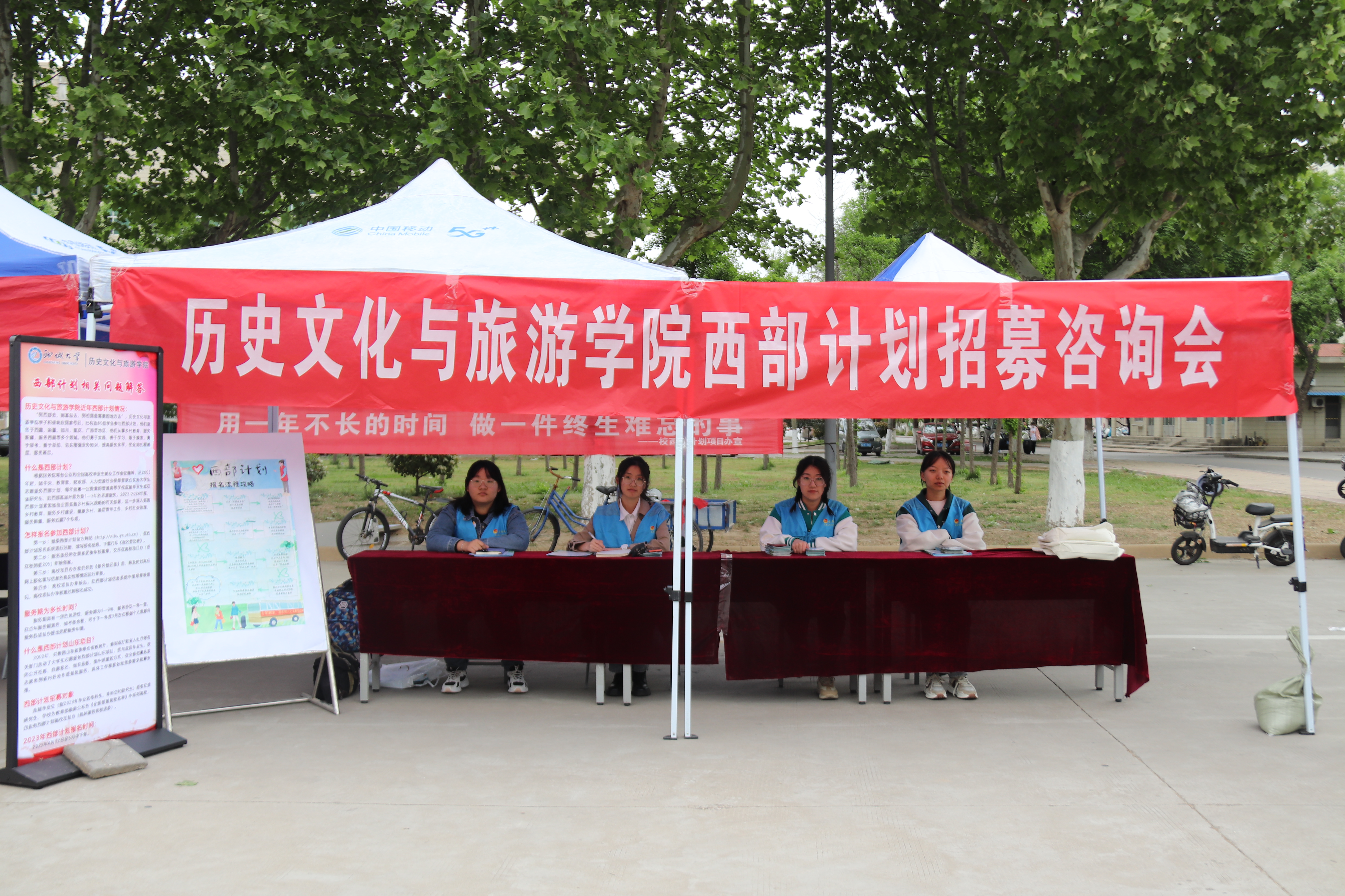 于逸夫图书馆前举办西部计划招募咨询会。 “到西部去、到基层去、到祖国最需要的地方去”。近些年来,我院已有近60位学子参与西部计划。 咨询会上,志愿者结合宣传页向同学们介绍了西部计划报名时间、报名流程、报名条件、岗位情况及政策保障。随后,志愿者向同学们发放宣传页、说明书等宣传资料,同学们纷纷驻足,认真聆听讲解。咨询会现场氛围热烈。 紧接着,志愿者对有意向报名参加的同学进一步介绍西部计划相关事宜,并对同学们提出的问题进行详细解答。为更好地增进同学们对西部计划工作的了解,志愿者向同学们讲解小妲己直播