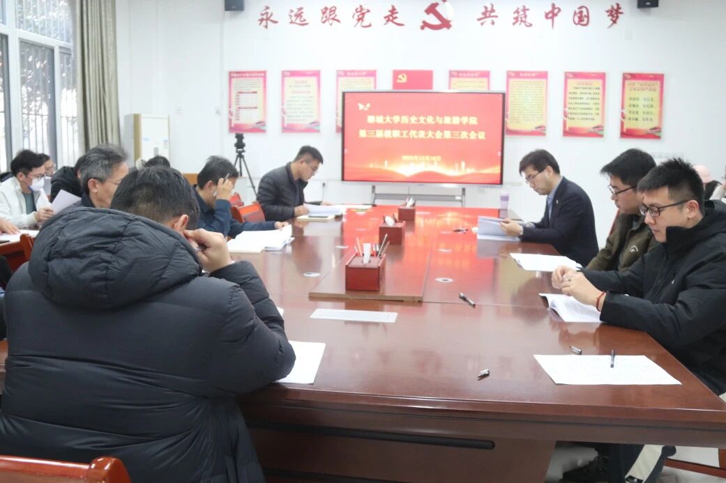 、运河学研究院第三届教职工代表大会暨工会会员代表大会第三次会议在6#A104会议室召开。学院党委书记陈传利,党委副书记、院长赵少峰,党委副书记、副院长卢庆洪,副院长王作成、官士刚及全体教职工代表参加会议。 第一阶段会议由陈传利主持。会上,赵少峰代表学院作题为《守正创新 协同配合 系统推进 笃行致远——全面推进学院高质量发展》的工作报告。报告全面回顾了2024、2025年学院发展成绩:教学改革持续深化,科研创新成果丰硕,学科建设稳步提质,国际合作不断拓展,党建与学生工作协同发力。其中,专业认证攻坚取得关键突破,科研经费实现大幅增长,学科等级迈上新台阶,学院主办的国际会议获外国政要出席、研究报告获国家级领导批示,成为学科建设与科研创新、社会服务协同推进的重要亮点。 报告客观指出学院当前面临的挑战,包括高层次人才引进压力较大、学科特色凝练仍需加强、人才培养与社会需求衔接不够紧密等问题,并明确了2026年“十五五”规划开局之年的工作目标与重点任务。 按照大会议程安排,与会教职工分组围绕学院工作报告、2026年工作计划(草案)及专职科研岗管理办法(修订版)(草案)展开热烈研讨。各小组代表集中汇报讨论情况,提出多项建设性意见建议,为学院发展建言献策。大会审议并通过了上述报告及制度文件。 陈传利在总结讲话中对全体教职工提出明确要求。他强调,要聚焦特色发展,锚定博士点培育、旅游管理专业国际认证核心任务;立足区域国别学、中国史、世界史等优势领域,深耕教学科研,提升社会服务与国际合作水平,筑牢高质量发展根基;要凝聚协同合力,发挥“学院+中心”平台优势,破解人才引育难题,严守安全底线,以务实作风推动2026年重点任务落地见效,为学院“十五五”开局蓄能。 此次会议进一步凝聚了全院思想共识、汇聚了发展合力。全体教职工将以此次会议为契机,锐意进取、真抓实干,为全面推进学院高质量发展注入更强动力。